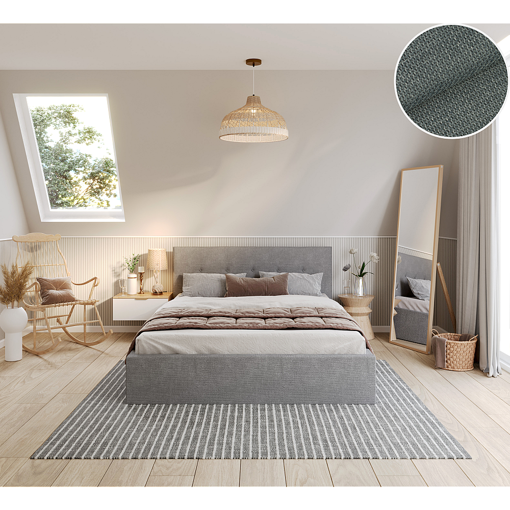 Lit Coffre Tulsa 140x200 cm - Sommier inclus Gris clair