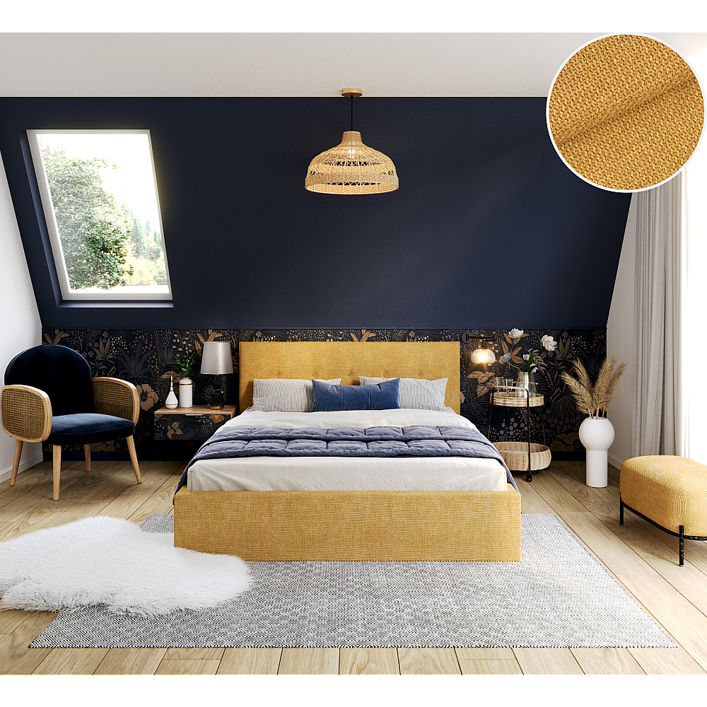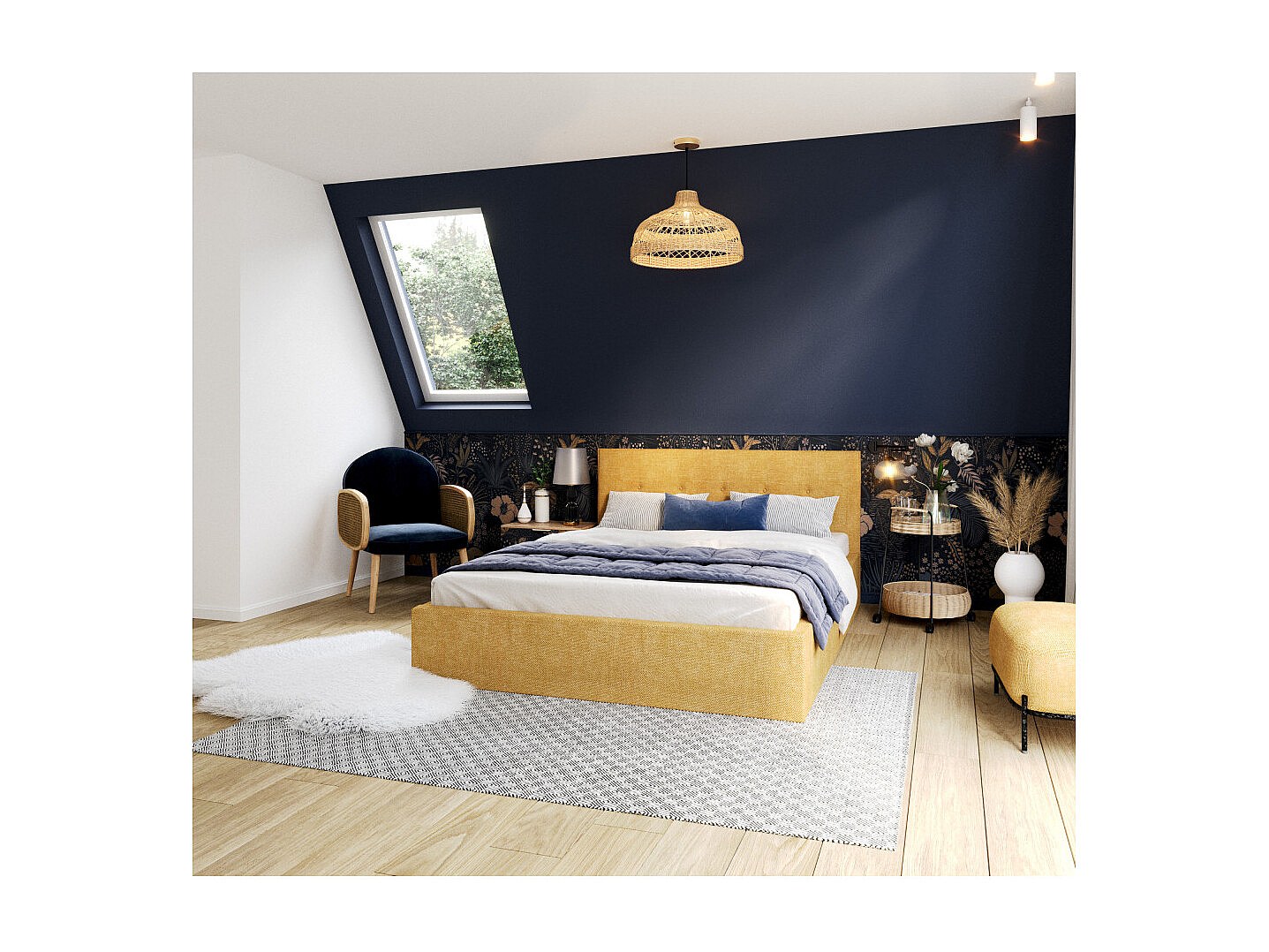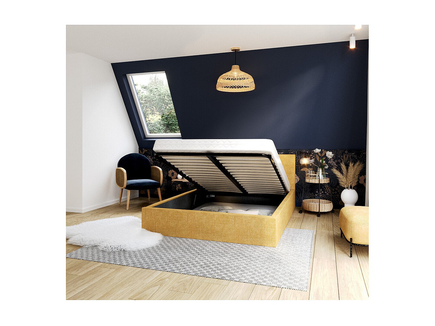 Lit Coffre Tulsa 140x200 cm - Sommier inclus Jaune miel