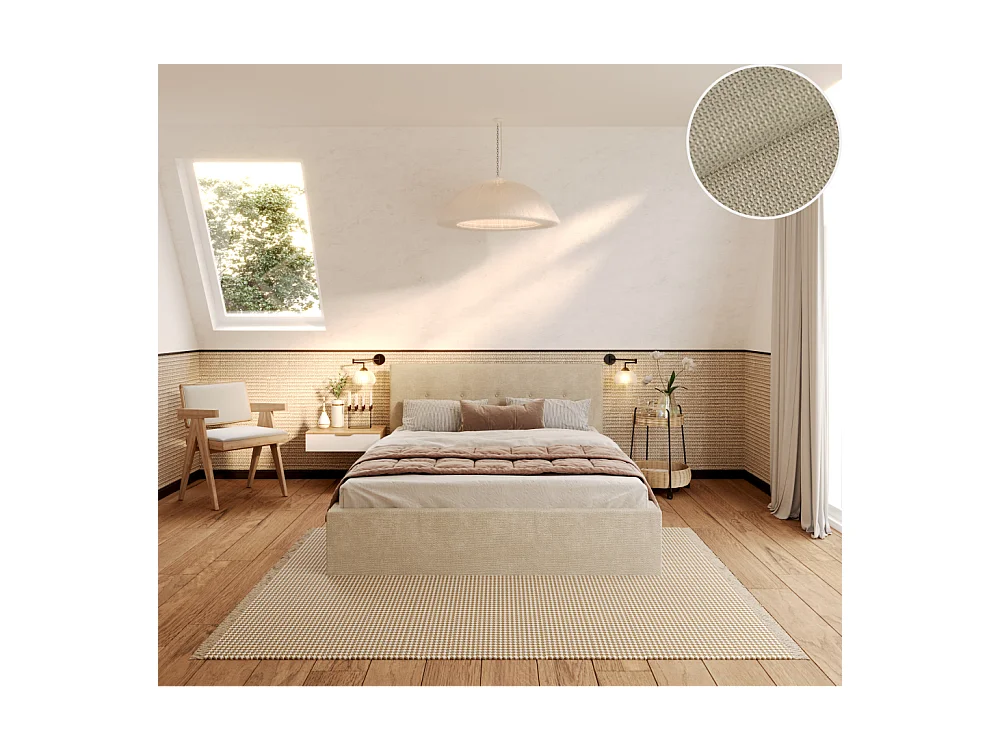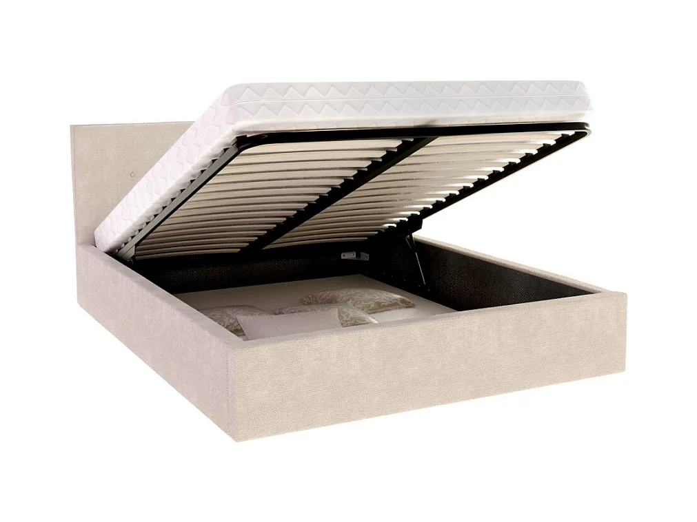 Lit Coffre Tulsa 160x200 cm - Sommier inclus Crème