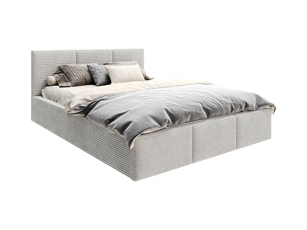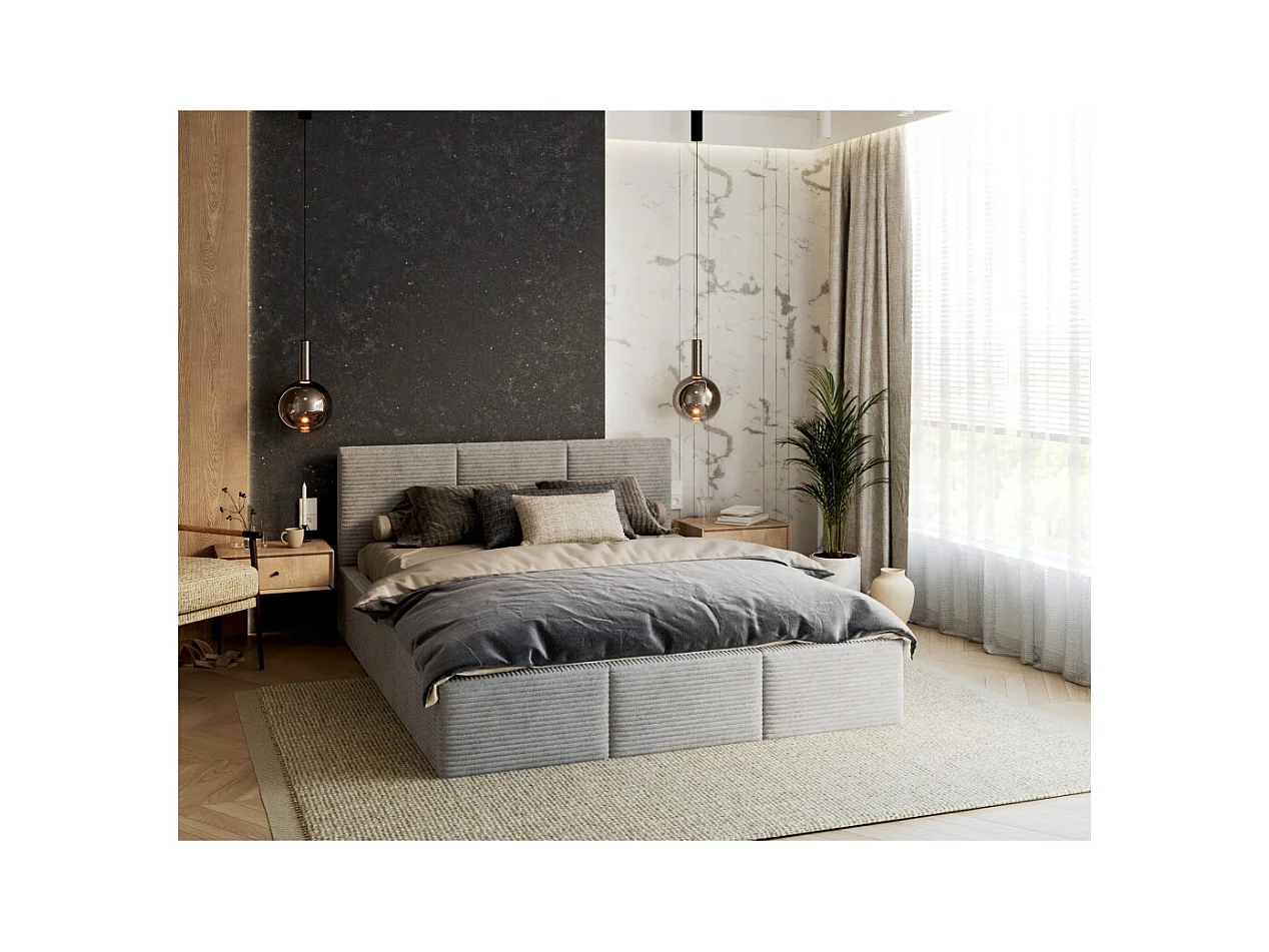 Lit coffre Tulum 160 x 200 cm - Velours cotelé - avec sommier à lattes relevable Gris Clair