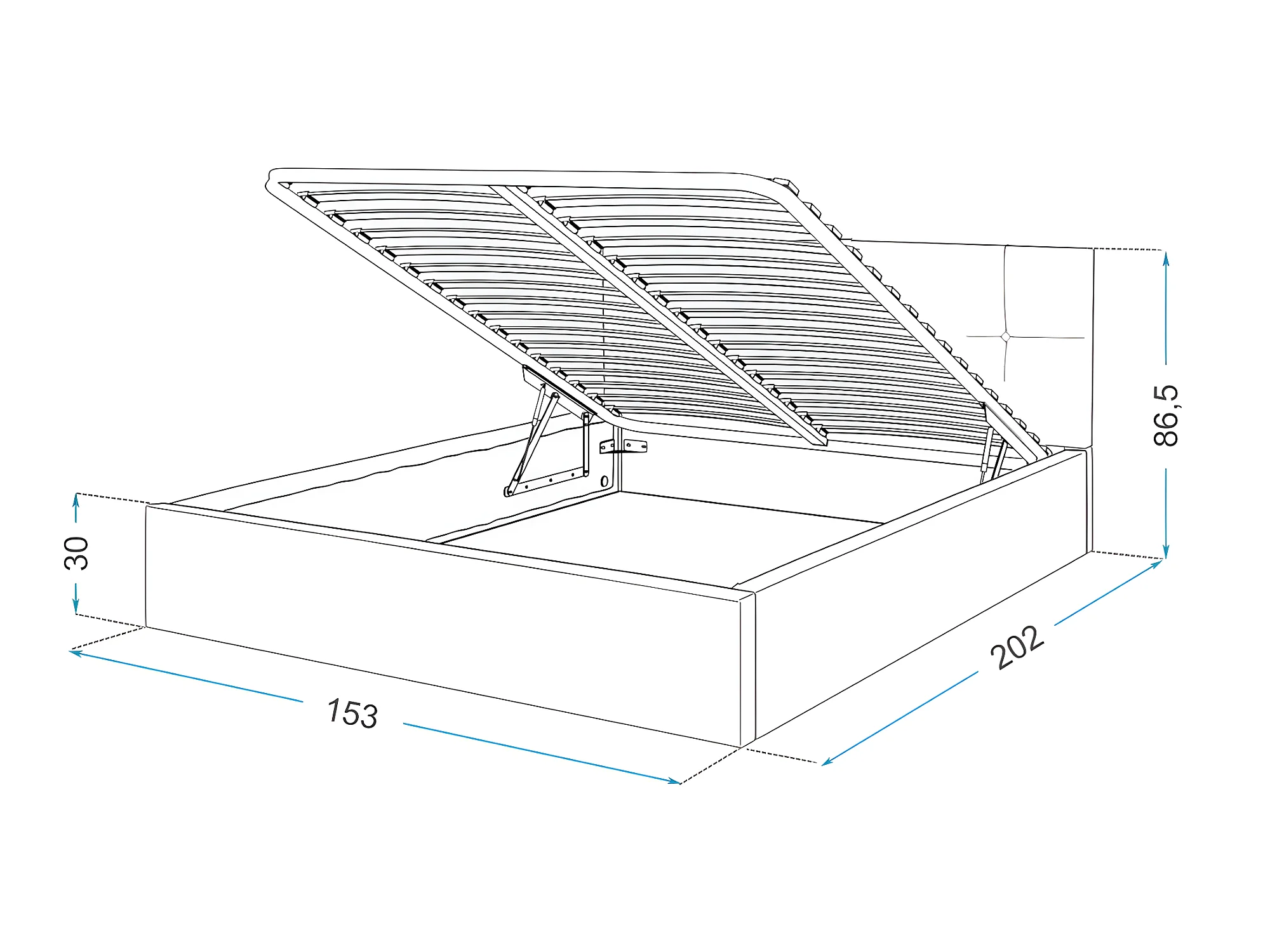 Lit coffre Vegas 140 x 190 cm avec sommier à lattes relevable Azur