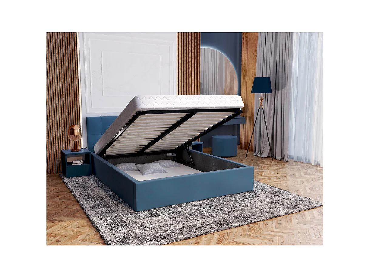 Lit coffre Vegas 140 x 200 cm avec sommier à lattes relevable Azur