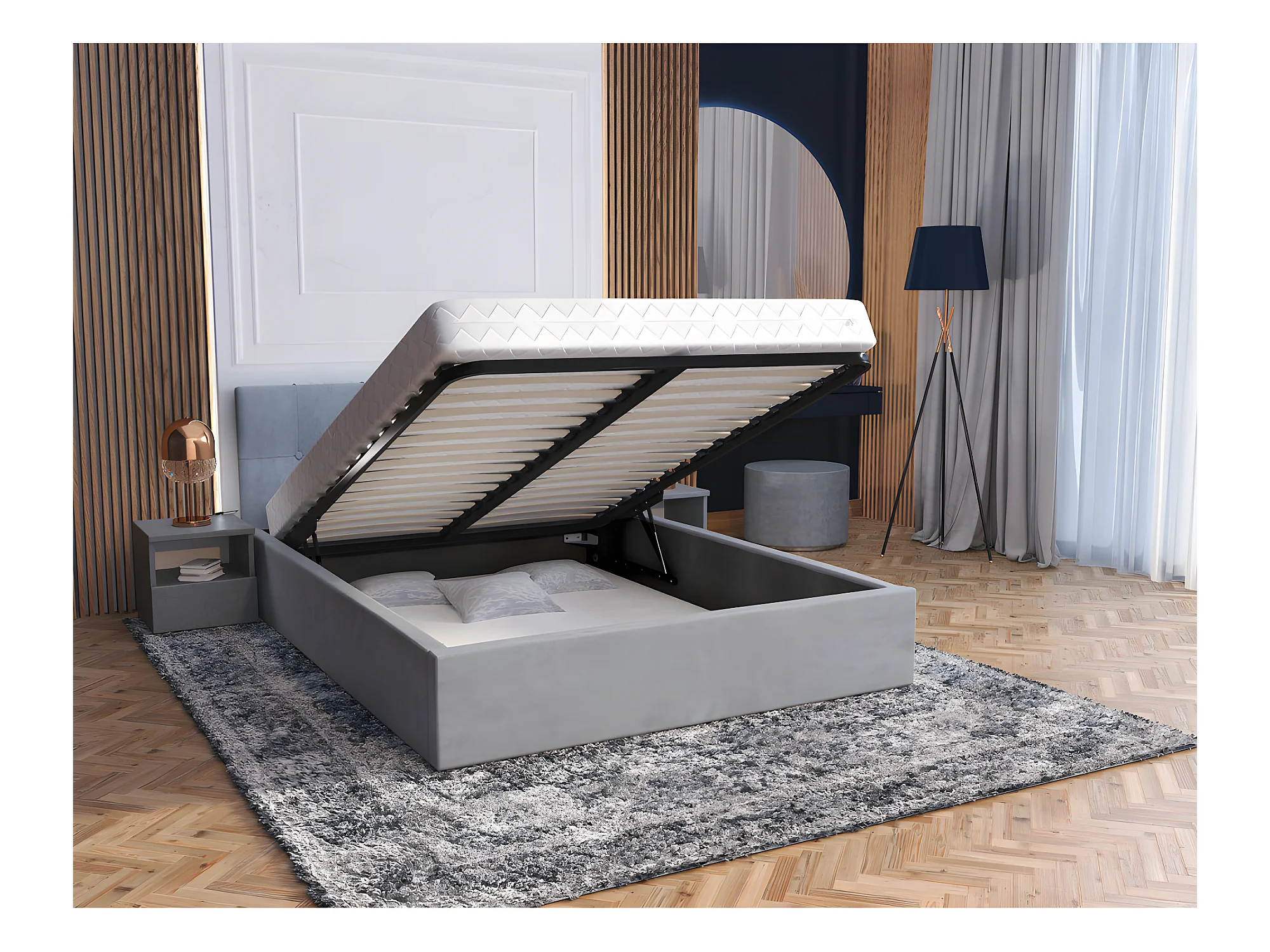 Lit coffre Vegas 160 x 200 cm avec sommier à lattes relevable Gris Clair