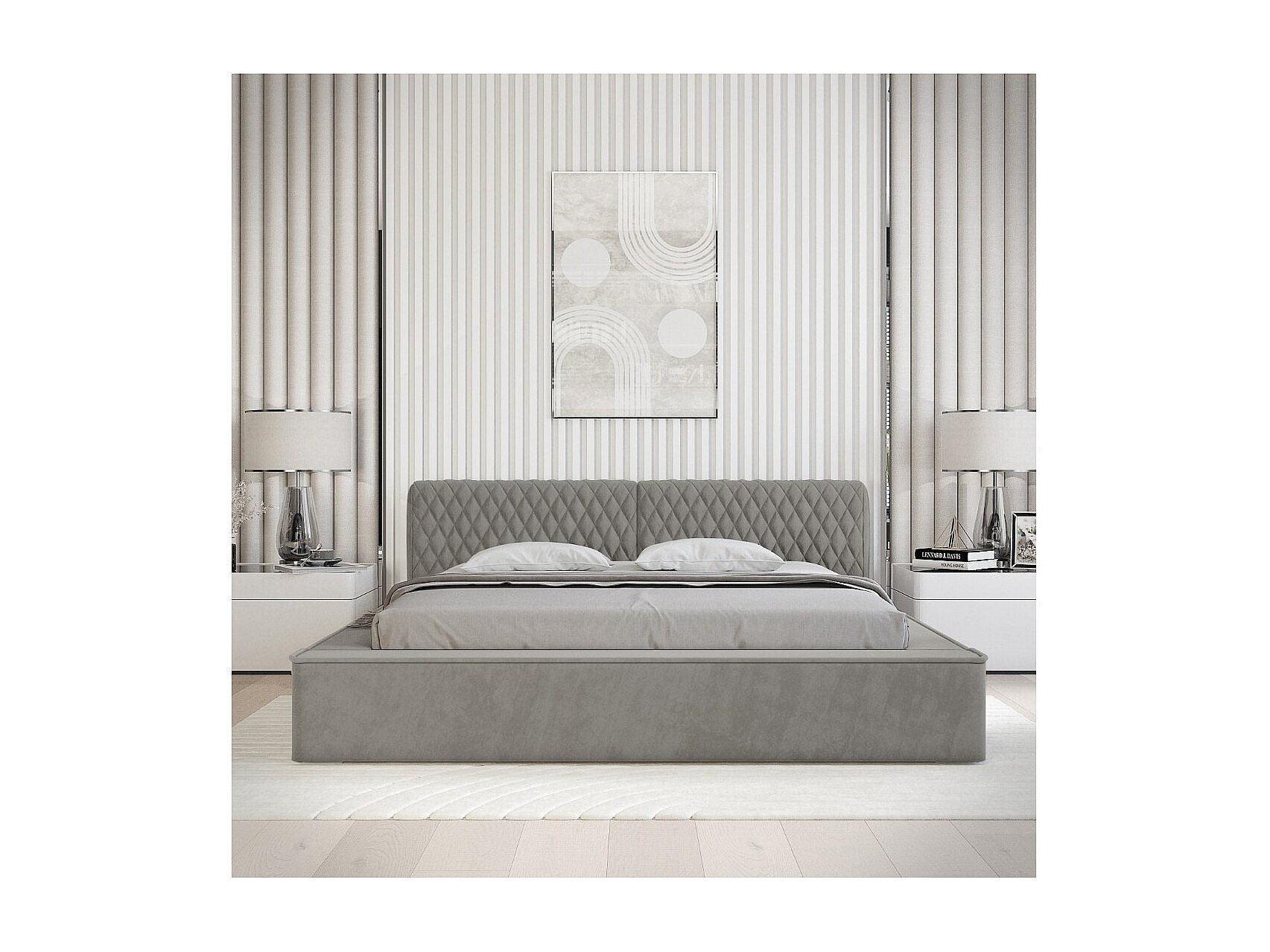 Lit coffre VERNON – Tissu chenille bouclé Cendre taupe – 140x200 cm – Sommier relevable – Design haut de gamme