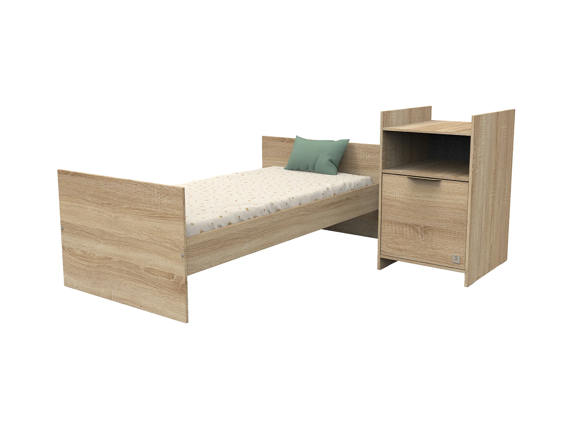 Lit combiné 120x60 évolutif en 90x190 avec porte décor chêne doré AZUR - Sauthon