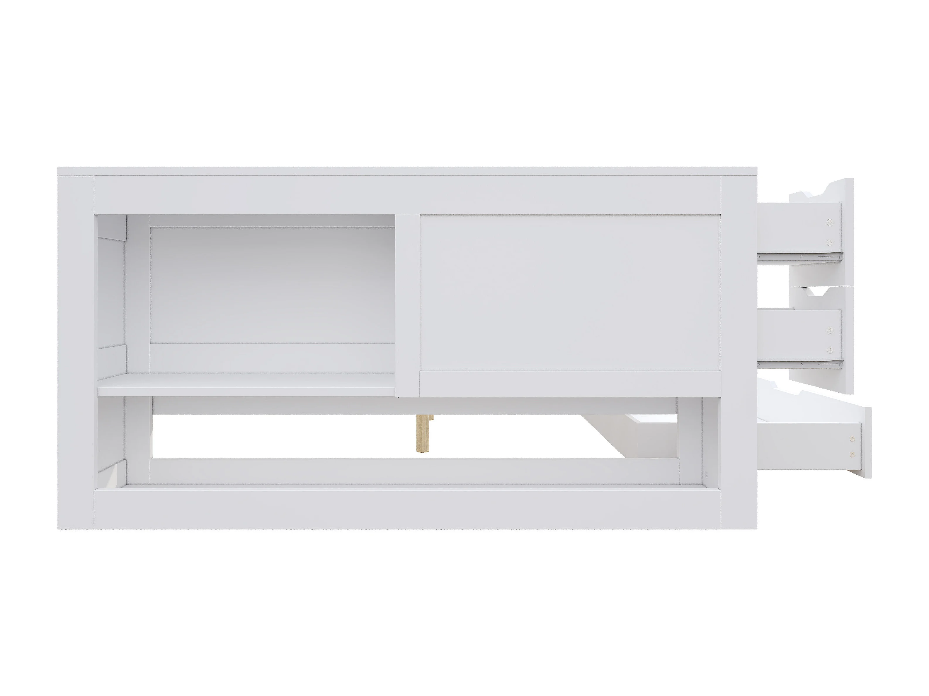 Lit combiné double 140 x 200 cm, tiroirs, chevets de rangement, pour adolescents, en MDF blanc, sans matelas