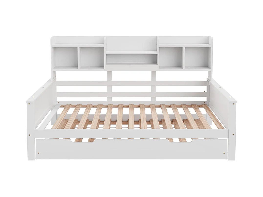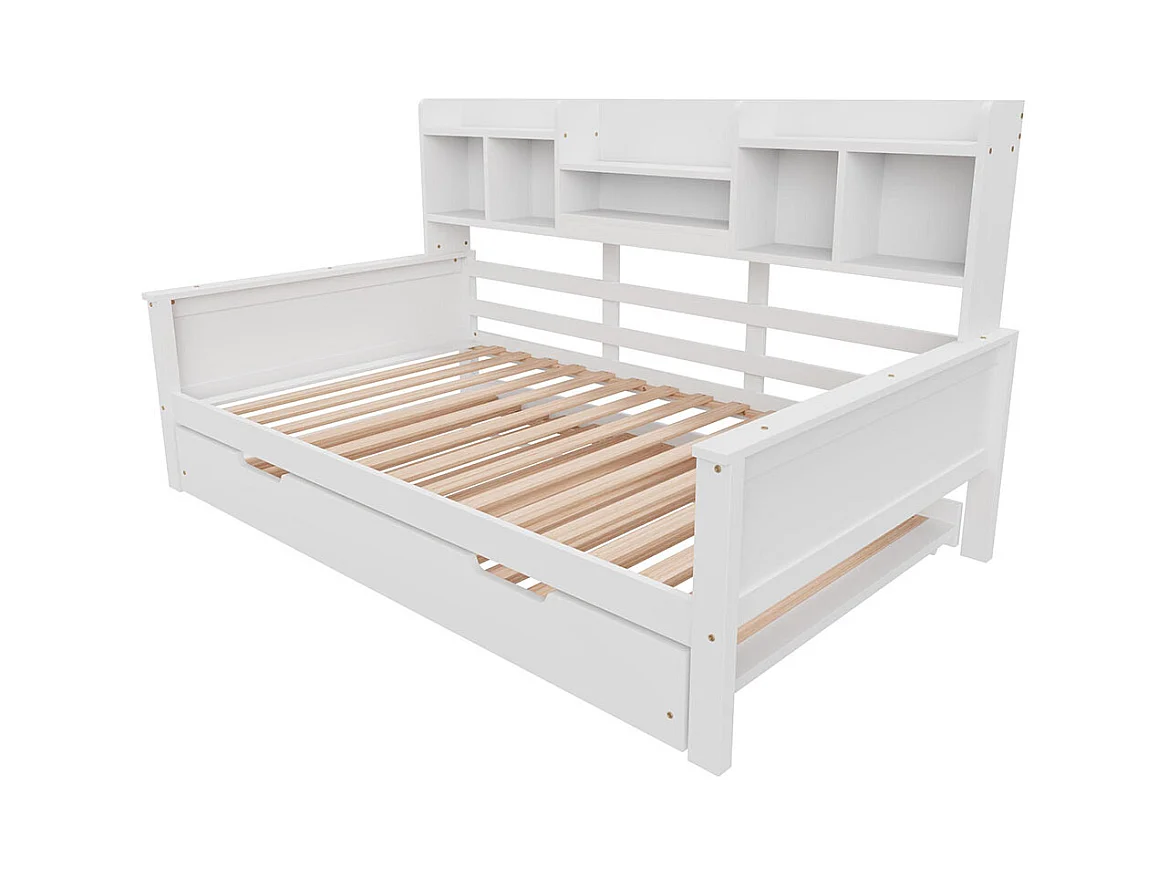 Lit combine extensible 90×200 en bois massif lit extensible 90×190 avec compartiment de rangement et sommier à lattes pin blanc