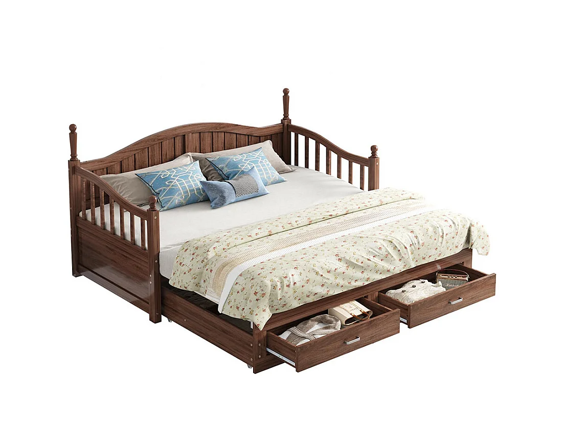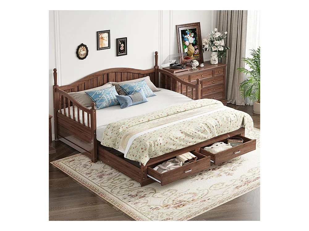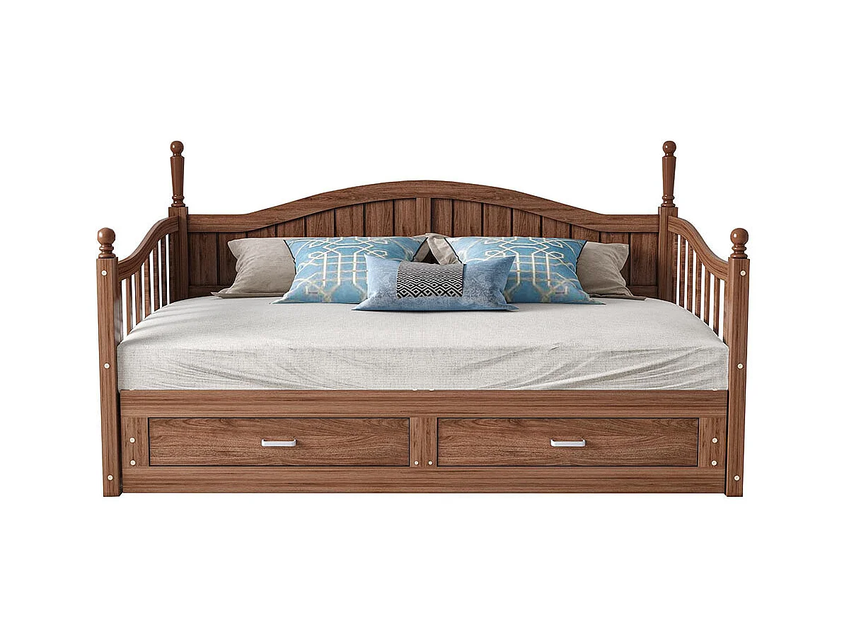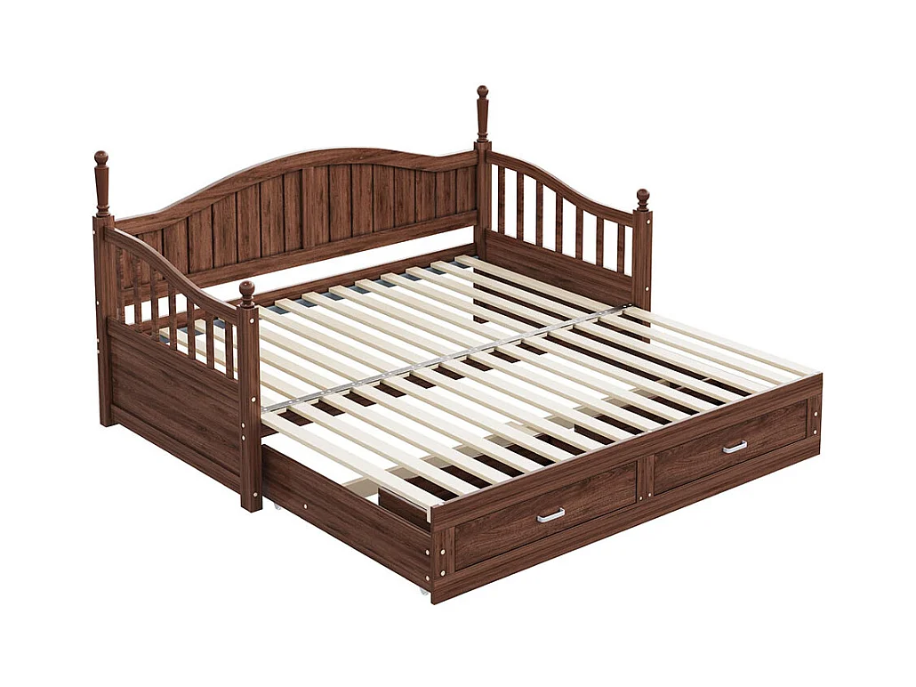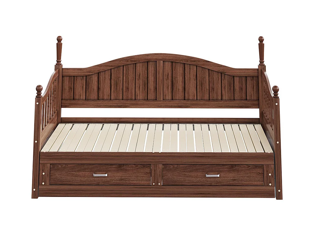 Lit combine extensible En bois massif 90/180×190 avec colonnes romaines dossier incurvé et accoudoirs avec tiroirs et sommier à lattes lit en pin noyer