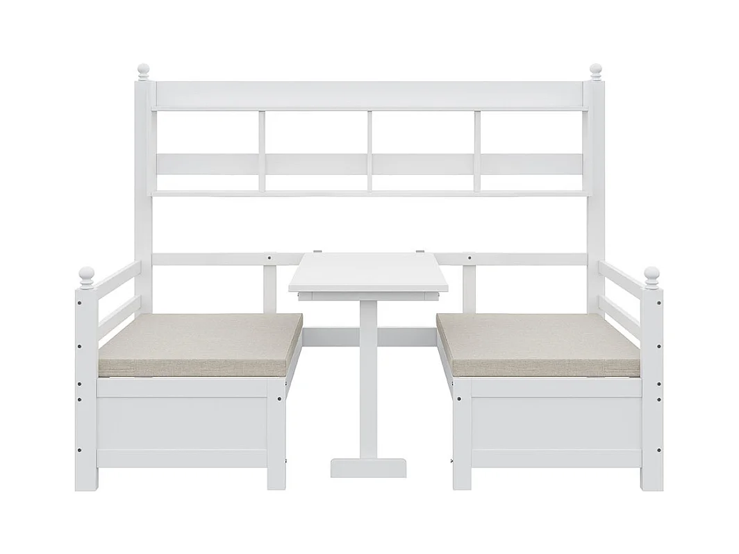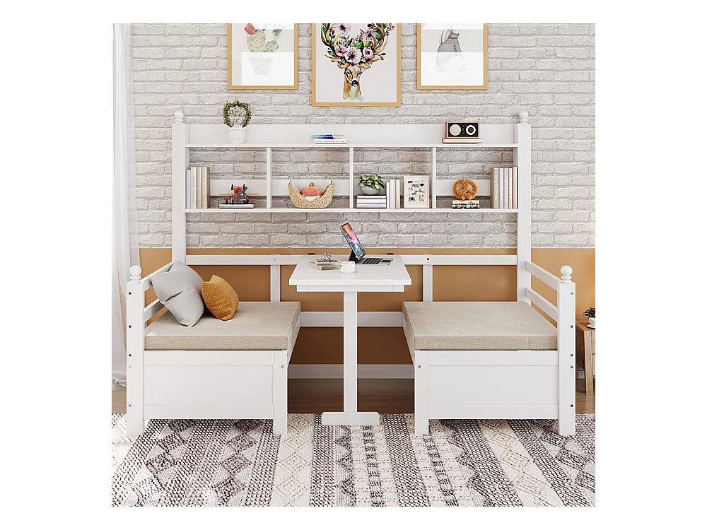 Lit combine lit multifonctionnel en bois massif 90x200 cm lit 2 en 1 et bureau modulable à volonté avec étagère de rangement avec coussins confortables blanc