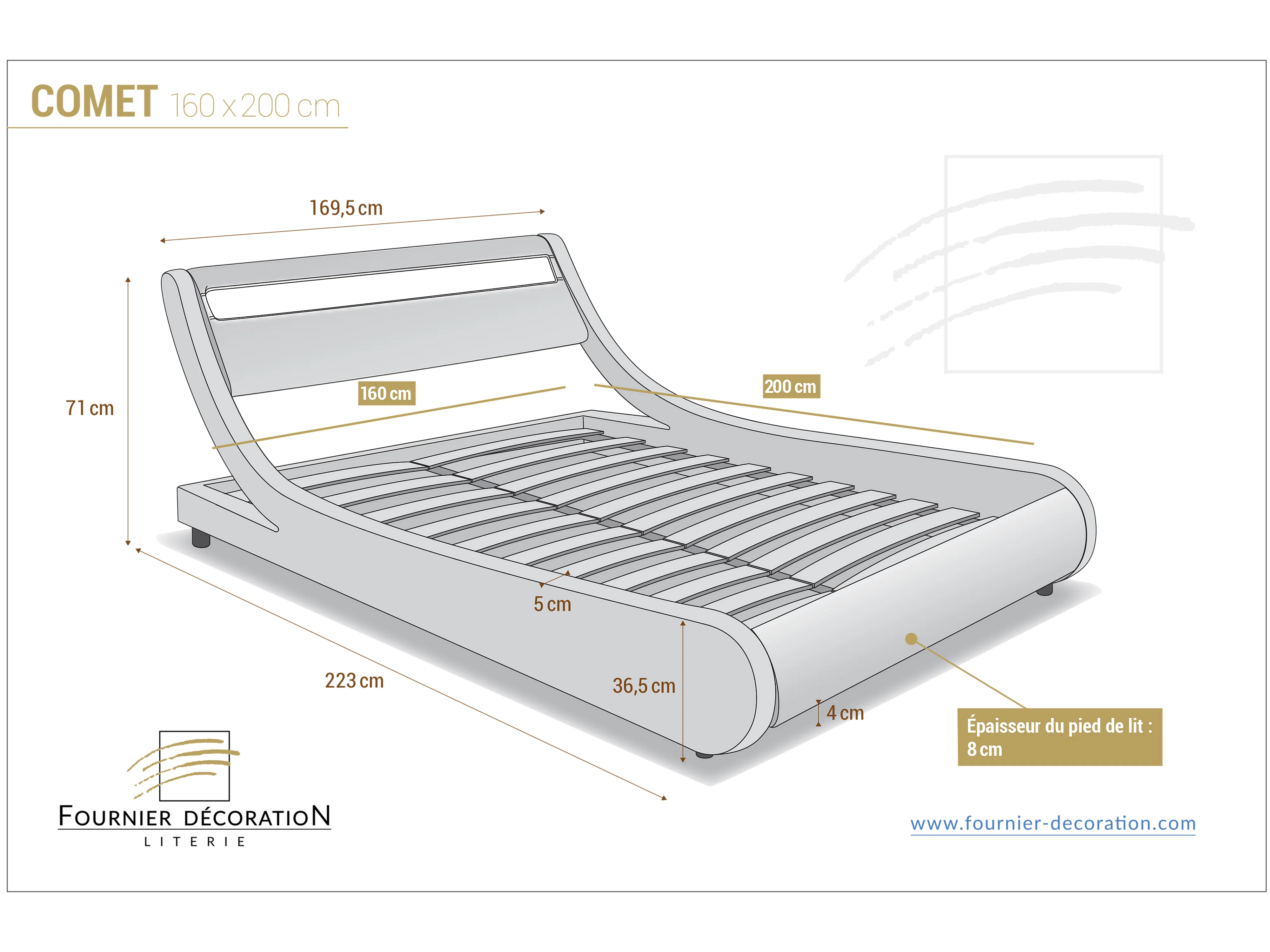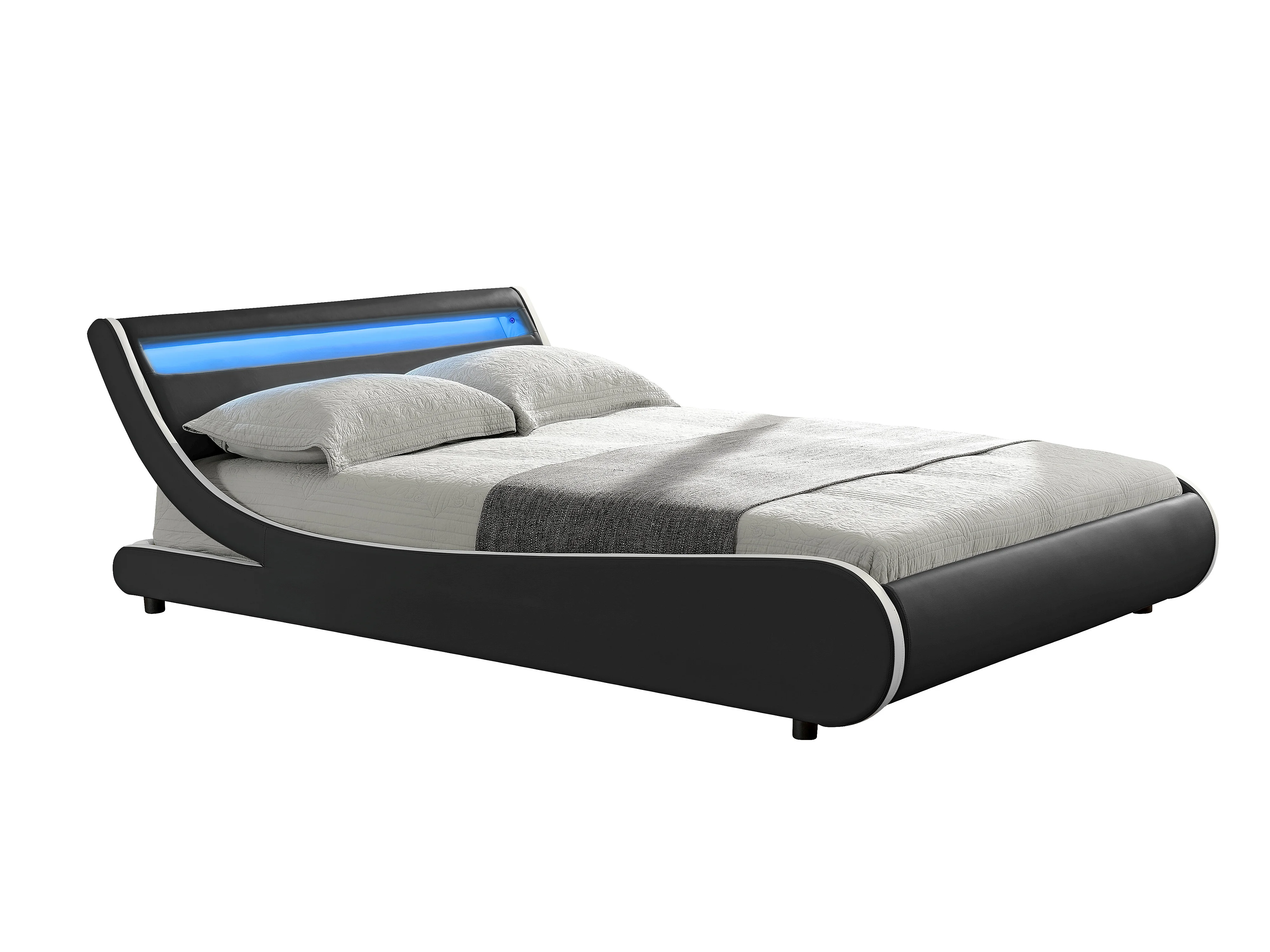Lit Comet LED PU Noir Liseré Blanc 160x200 cm
