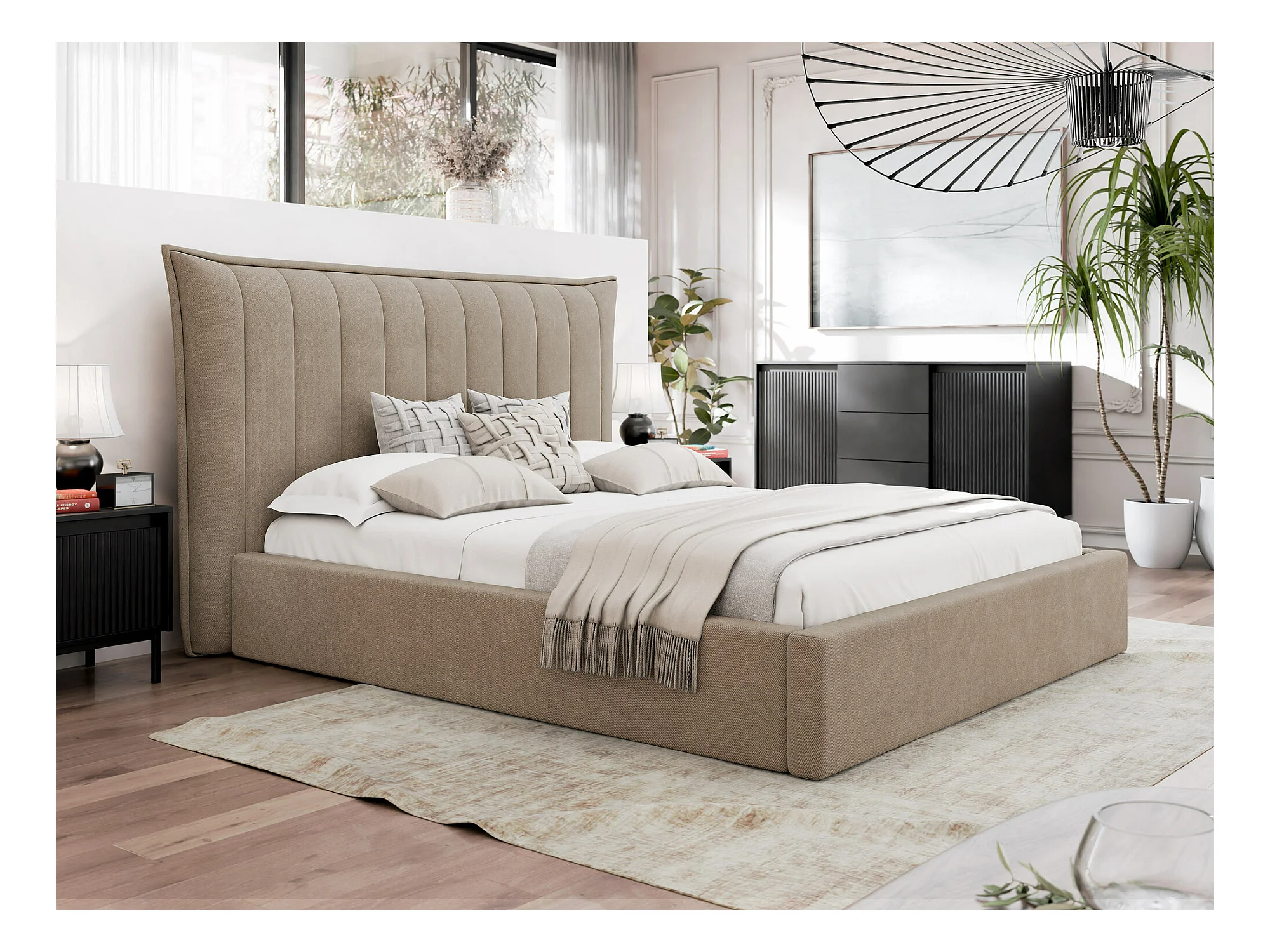 Lit Comfivo 382, Double, Brun clair, 140x200, Tapisserie, Sommier à lattes, 190x224x122cm