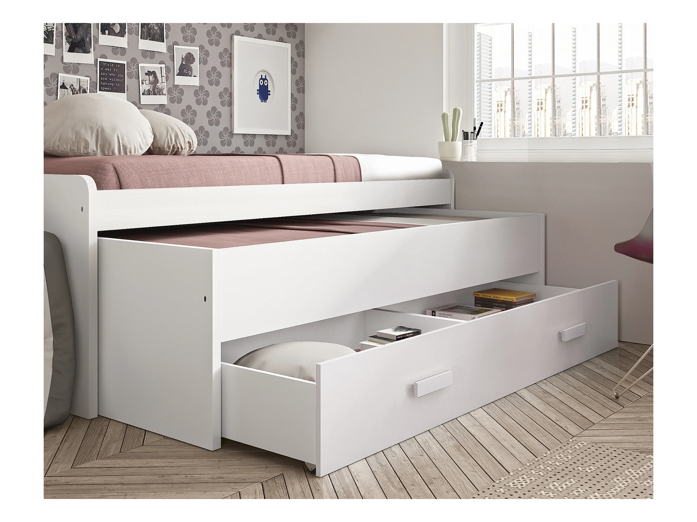 Lit Compact 90cm 73X201X100Cm Blanc