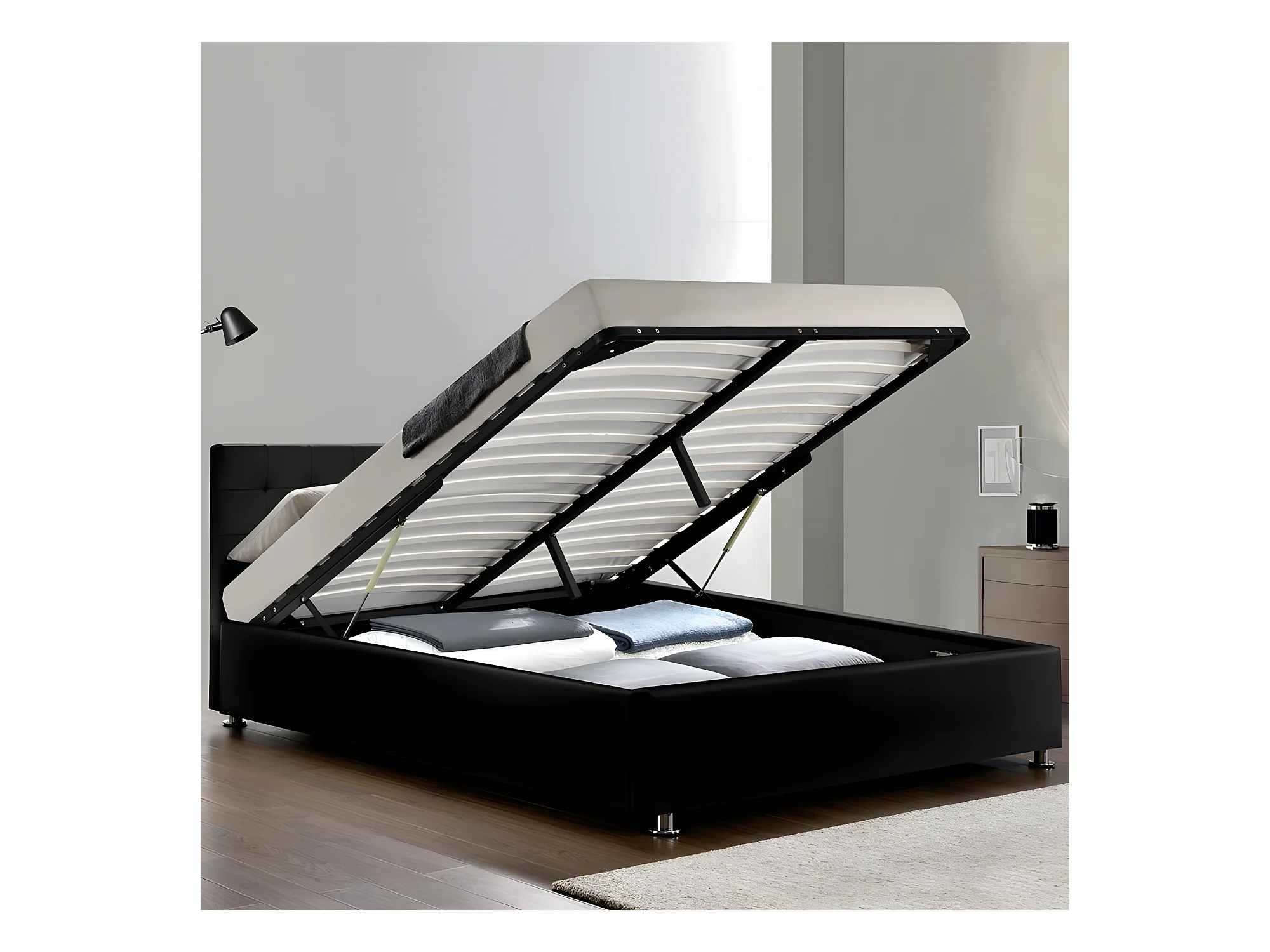 Lit Complet Sommier Relevable + Tête De Lit + Cadre De Lit Capitole - Couleurs - Noir, Tailles - 160