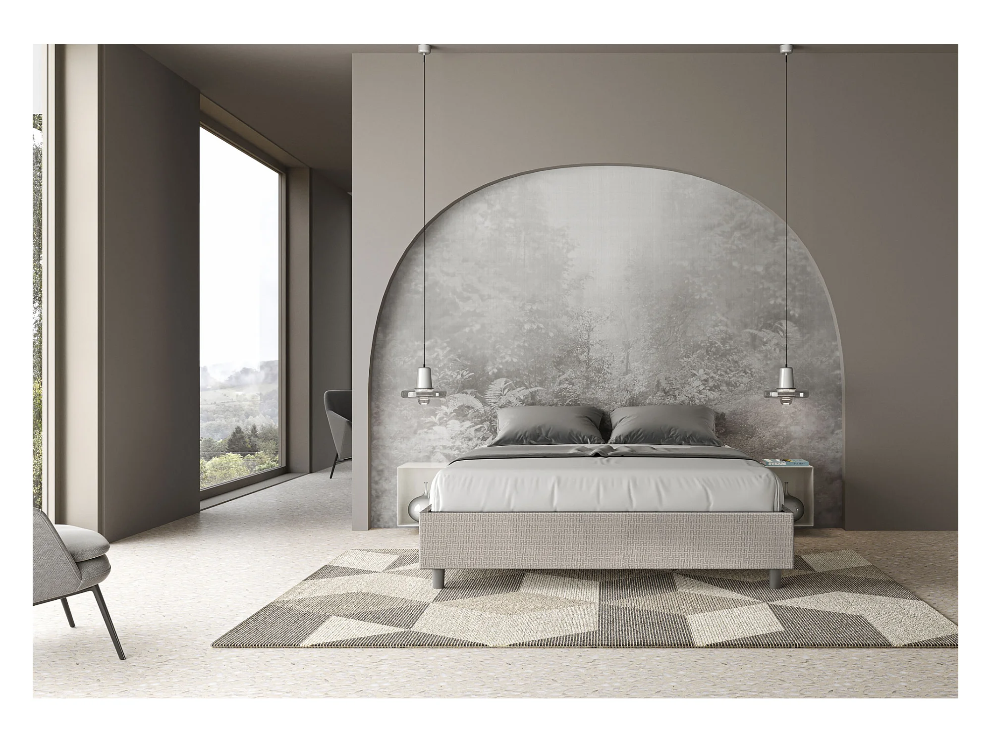 Lit coffre rembourré 160x190 tissu Labirinto 01 blanc Azelia