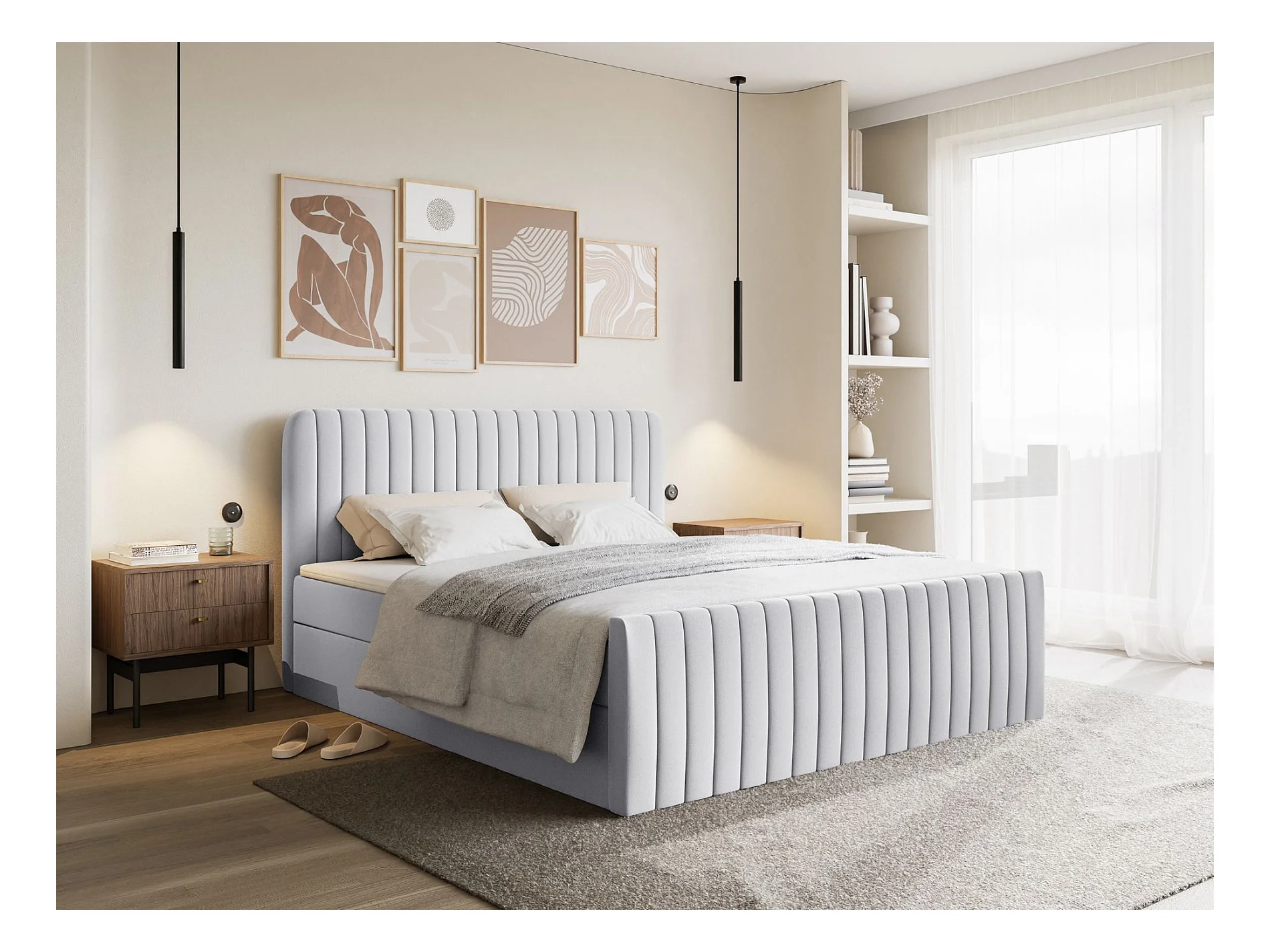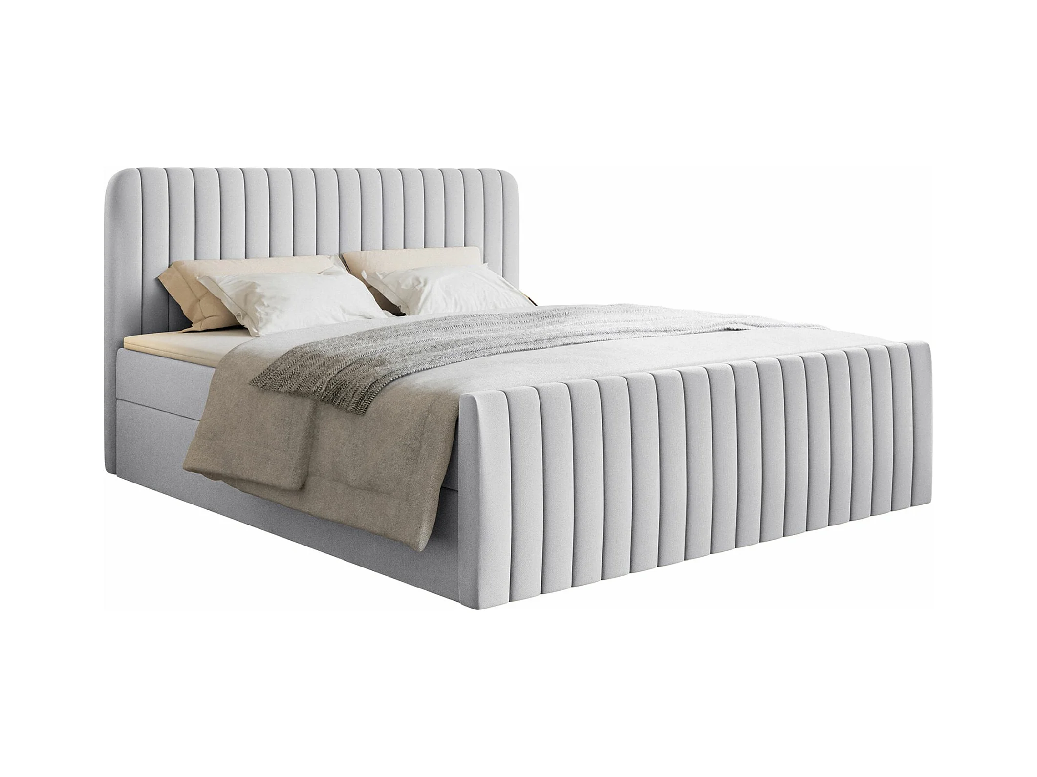 Lit continental avec surmatelas - 200x200 cm - chenille gris clair - SALIANO