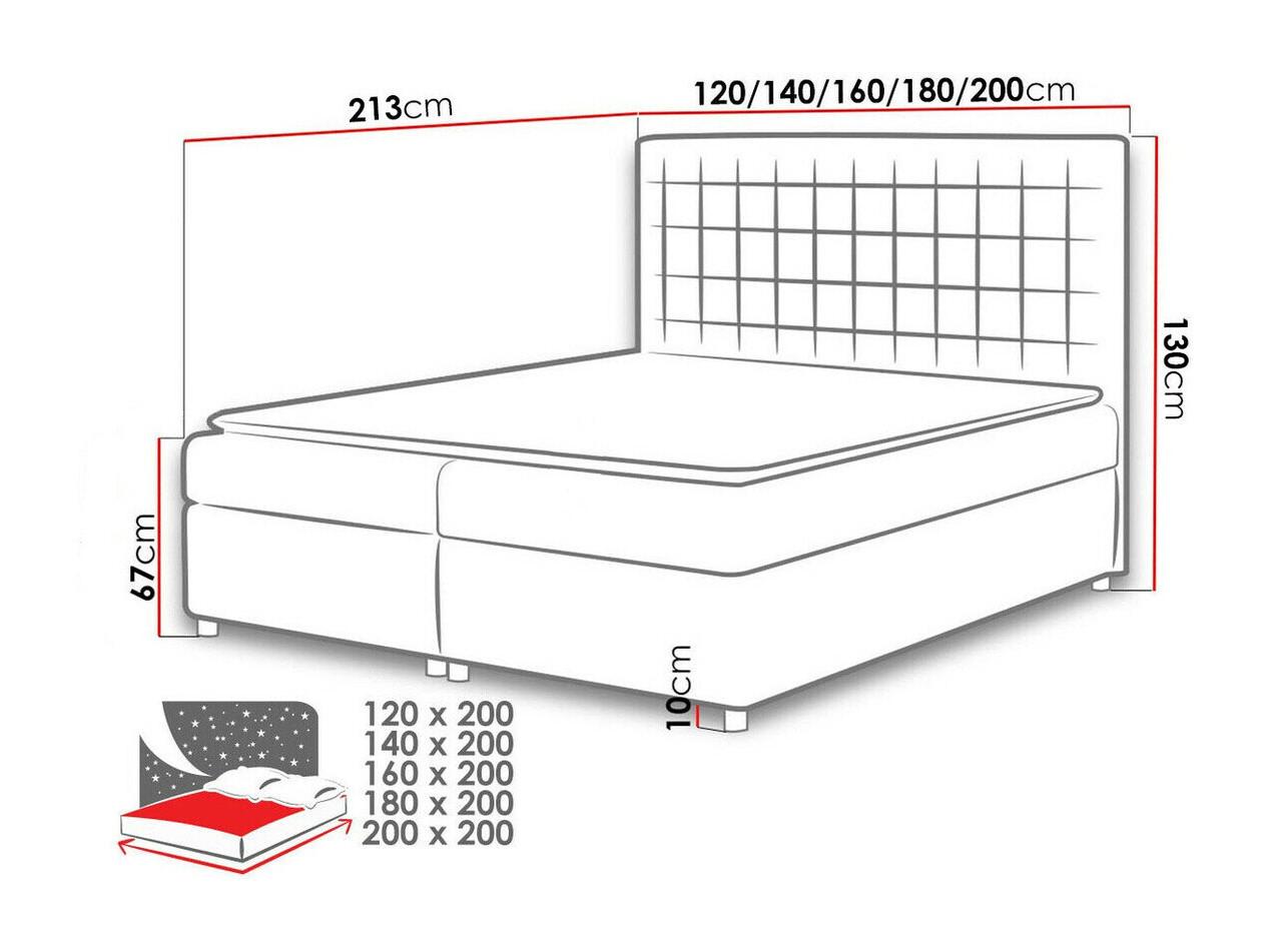 Lit continental Baltimore 115, Continental, Double, Rose, 200x200, Tapisserie, 200x213cm