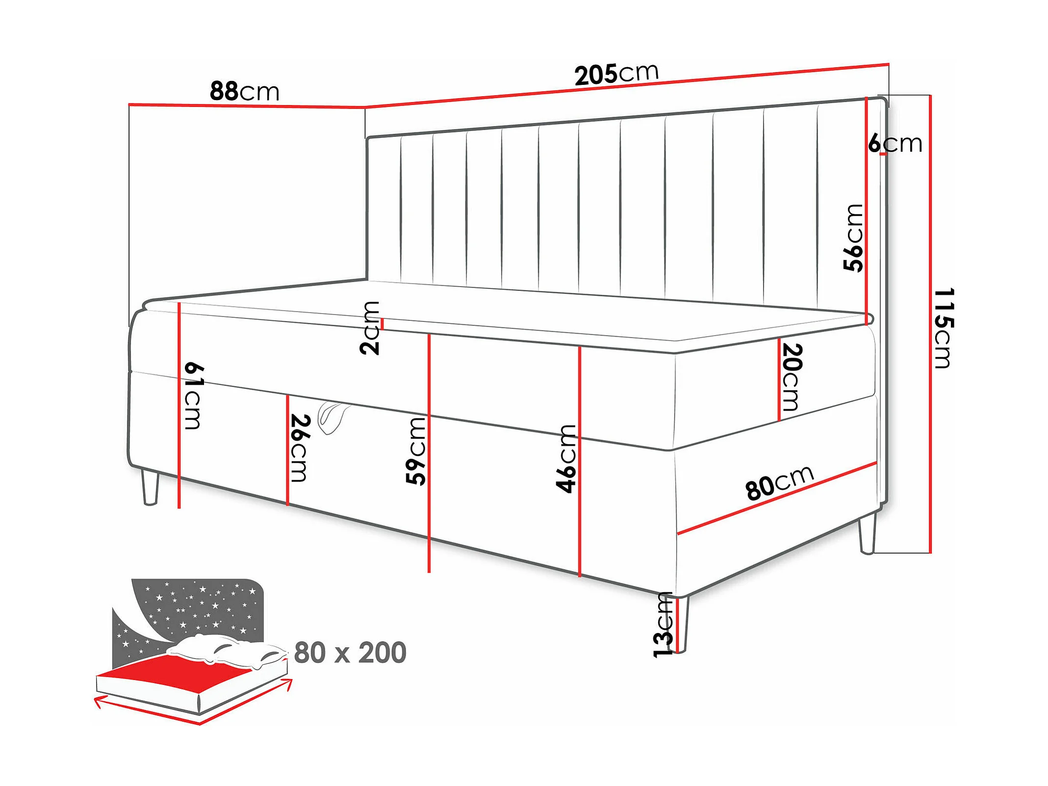 Lit continental Baltimore 165, Continental, Unique, Gris, 80x200, Tapisserie|Faux cuir,