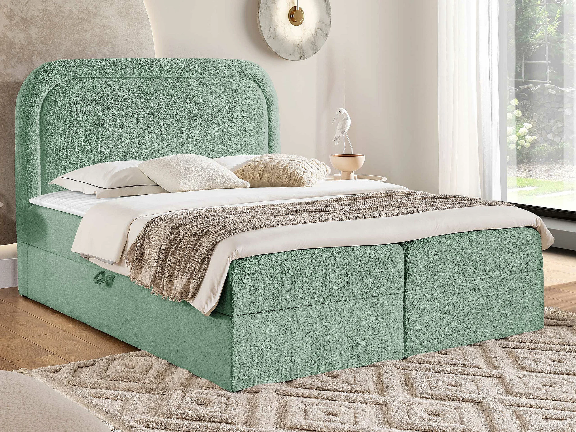 Lit continental Baltimore 197, Continental, Double, Turquoise, 200x200, Tapisserie, 204cm