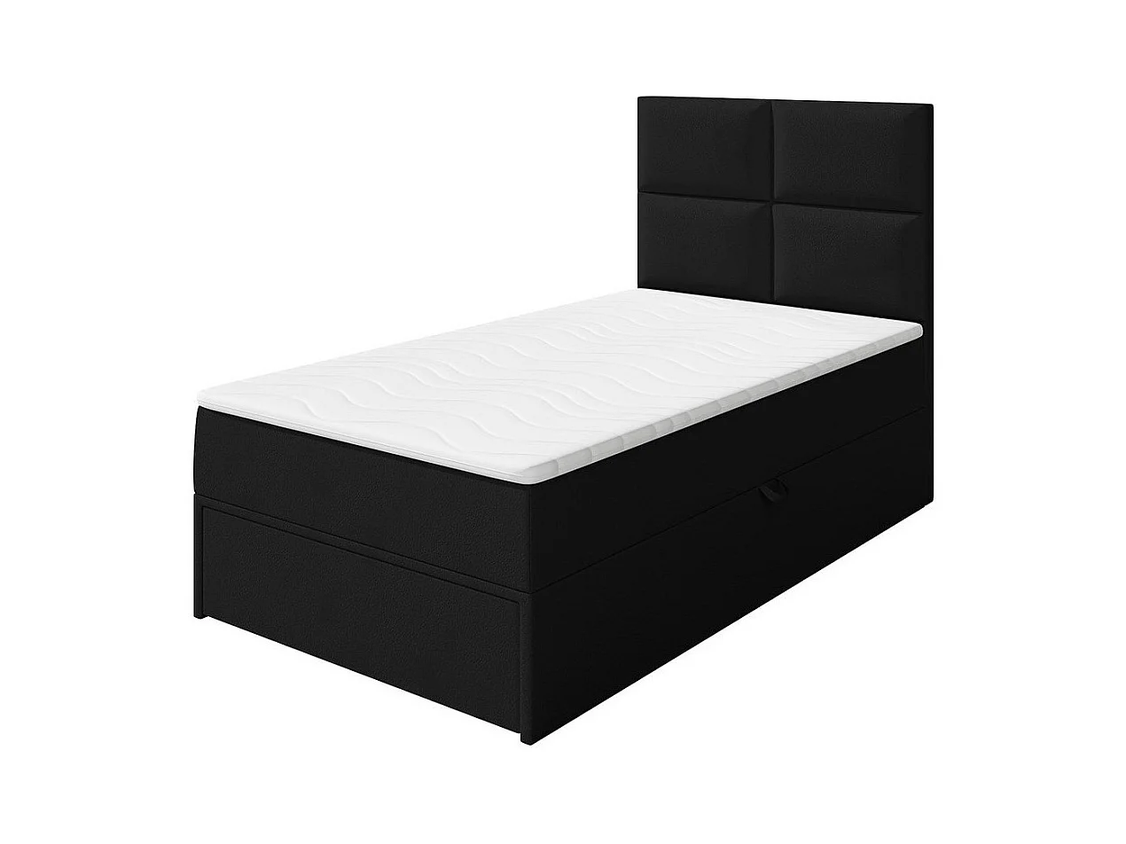 Lit continental Eugene 100, Continental, Unique, Noir, 100x200, Faux cuir, 100x207x120cm