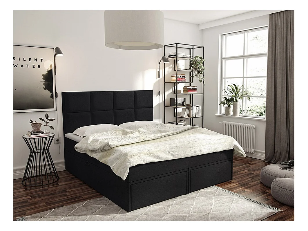Lit continental Eugene 101, Continental, Double, Noir, 200x200, Faux cuir, 200x207x120cm