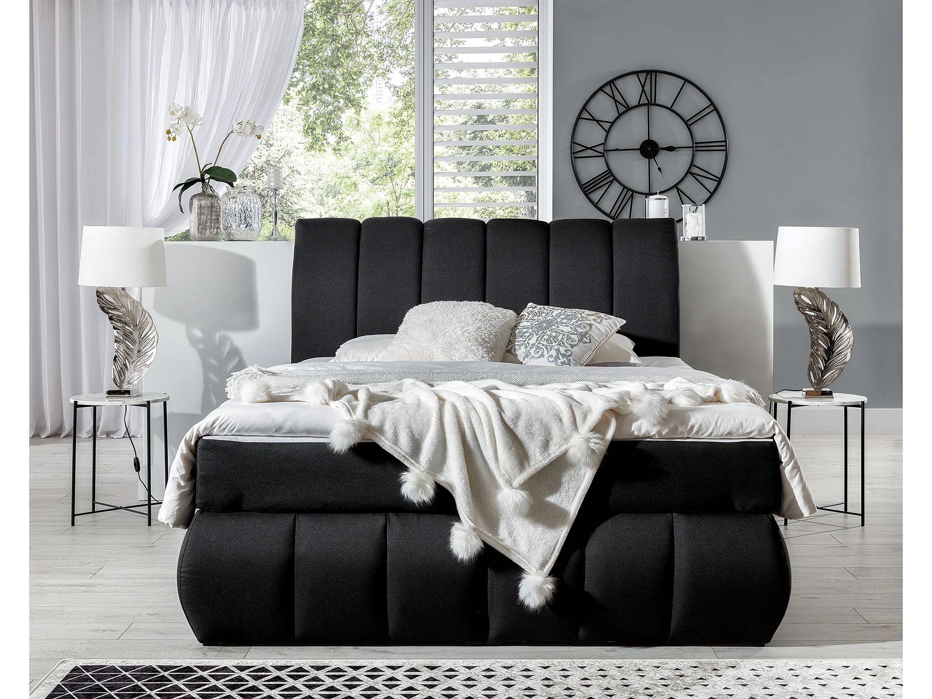 Lit continental matelassé tissu noir chiné Florencia-160x200