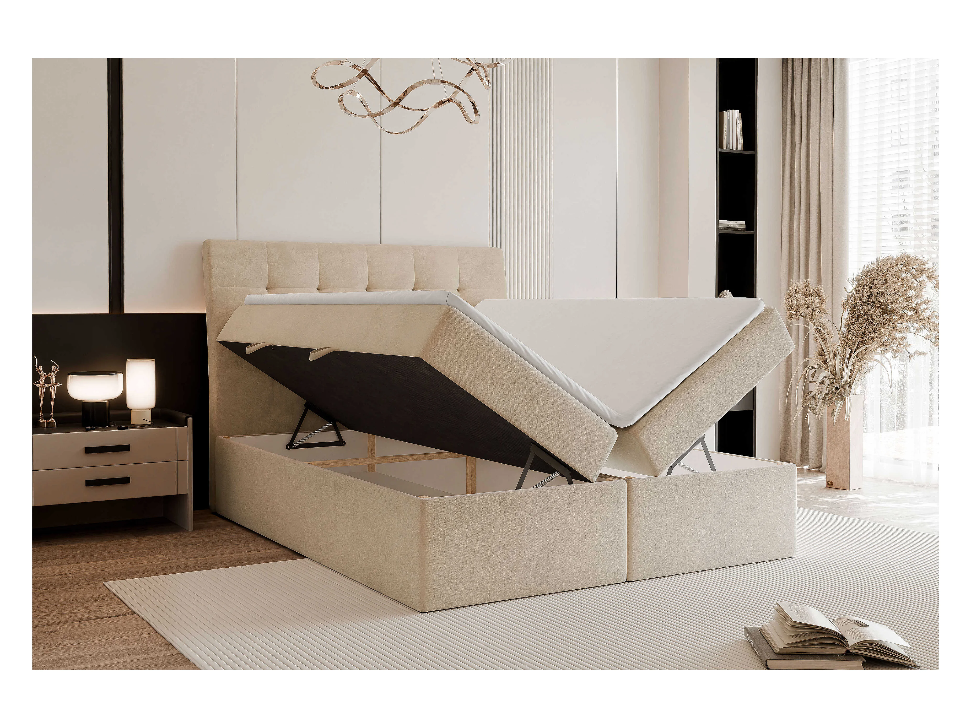 Lit continental rembourré avec matelas, crème - 200x200