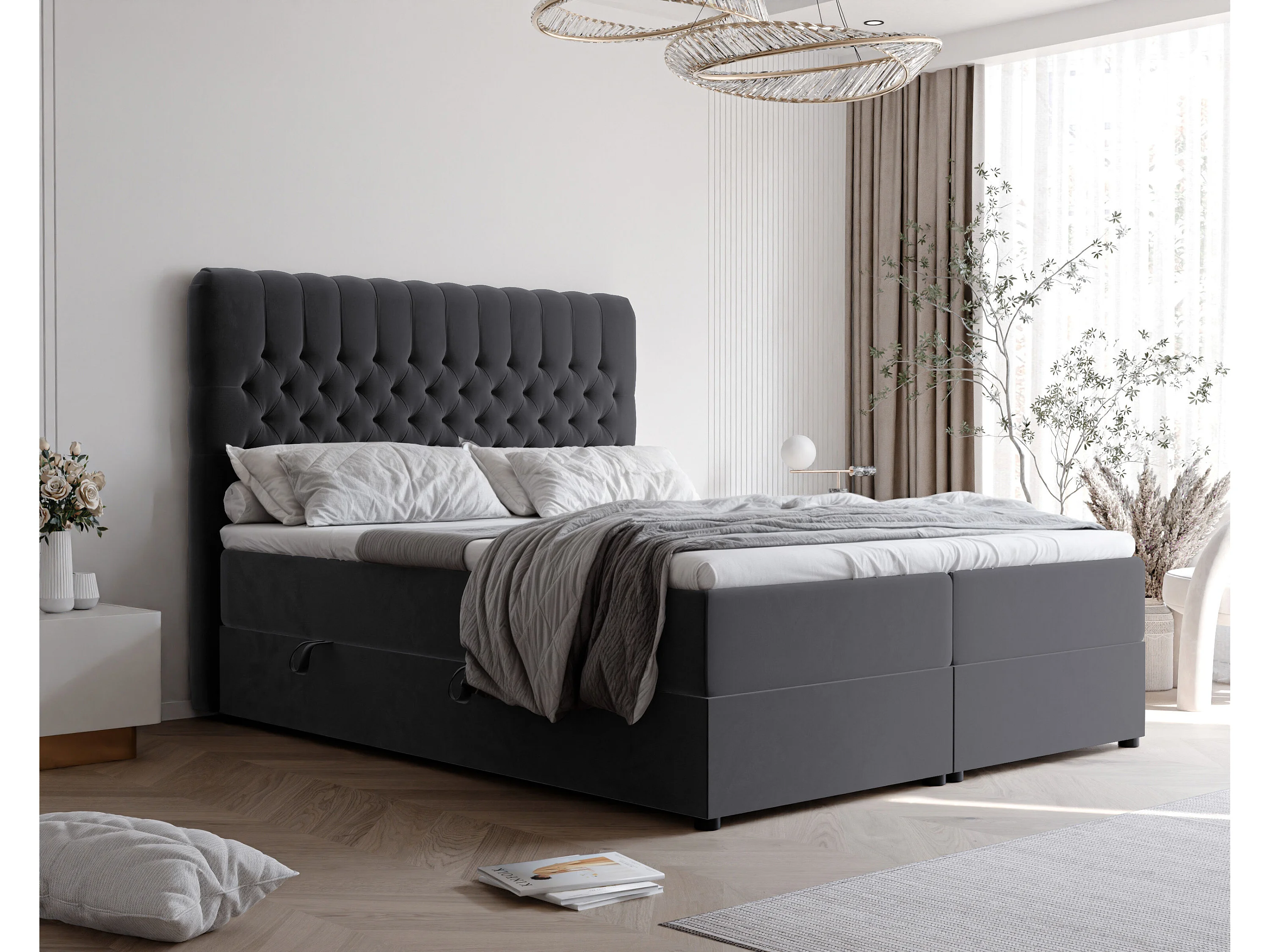 Lit continental rembourré avec matelas, gris anthracite - 140x200
