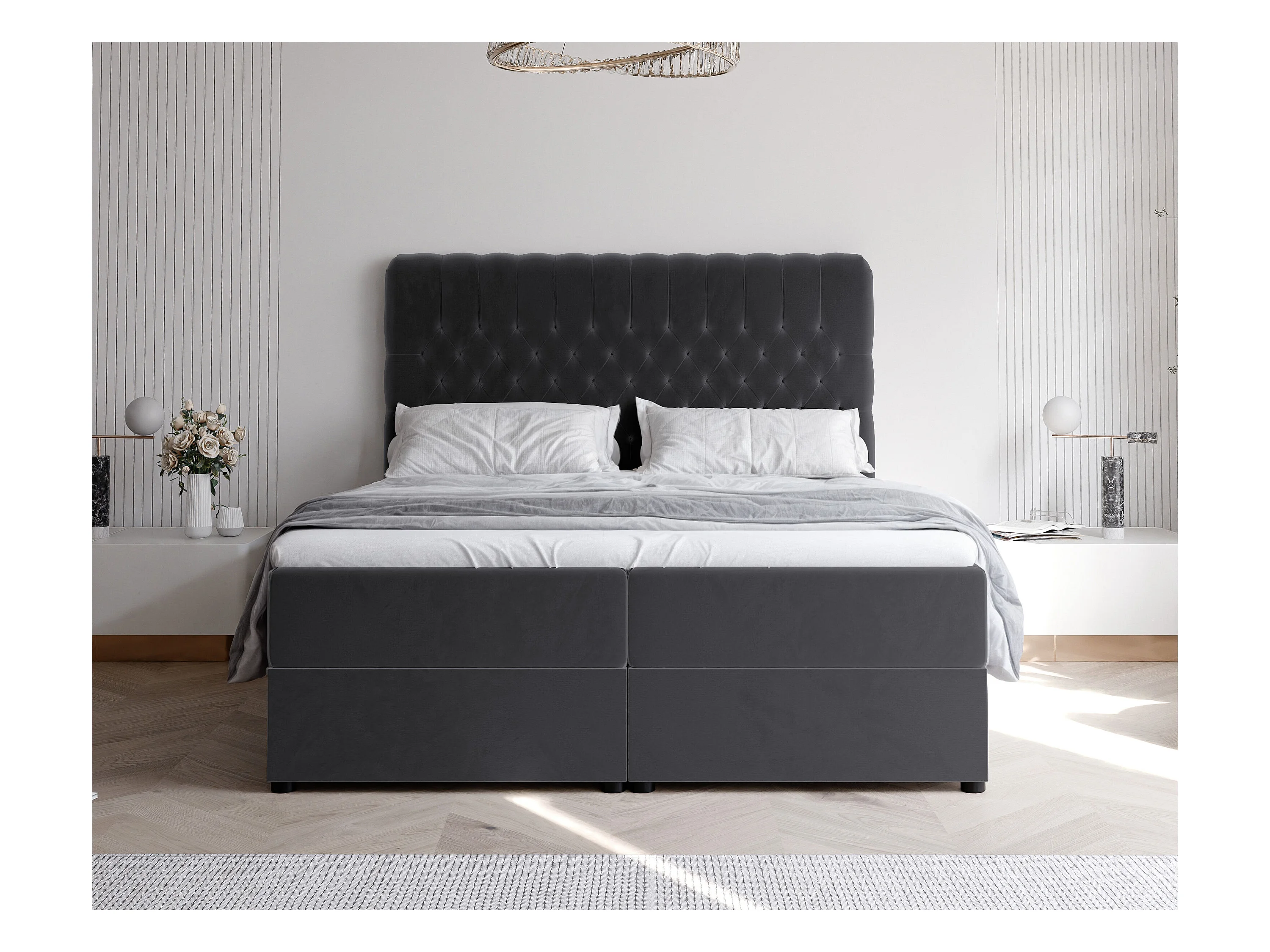 Lit continental rembourré avec matelas, gris anthracite - 180x200