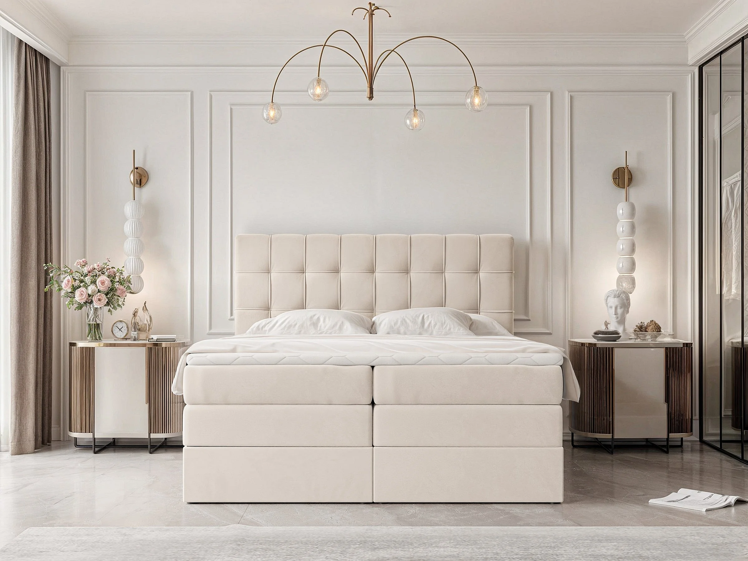 Lit continental rembourré avec surmatelas, beige - 160x200 - SANTINO
