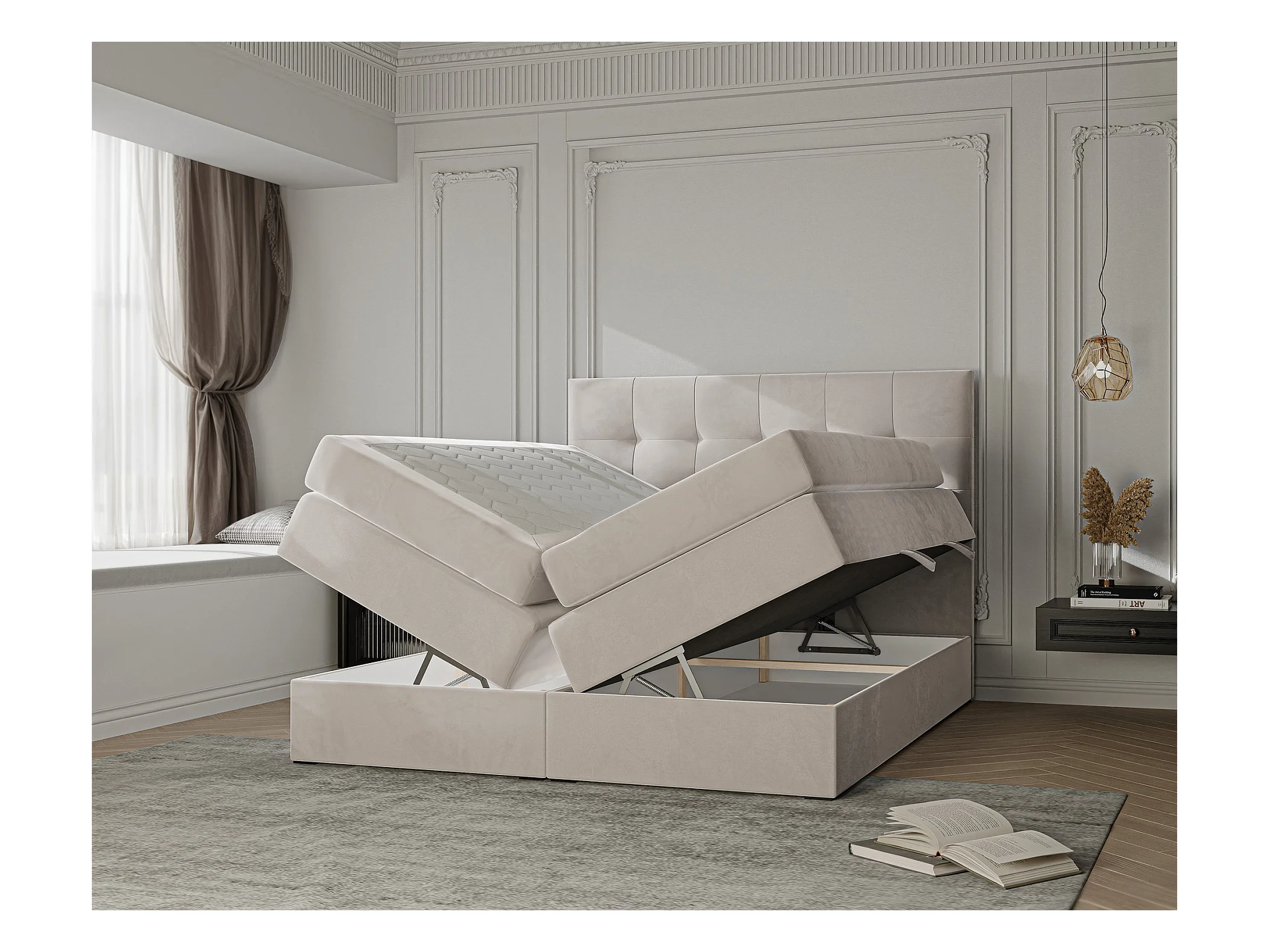 Lit continental rembourré avec surmatelas, beige - 200x200 - AZARIO