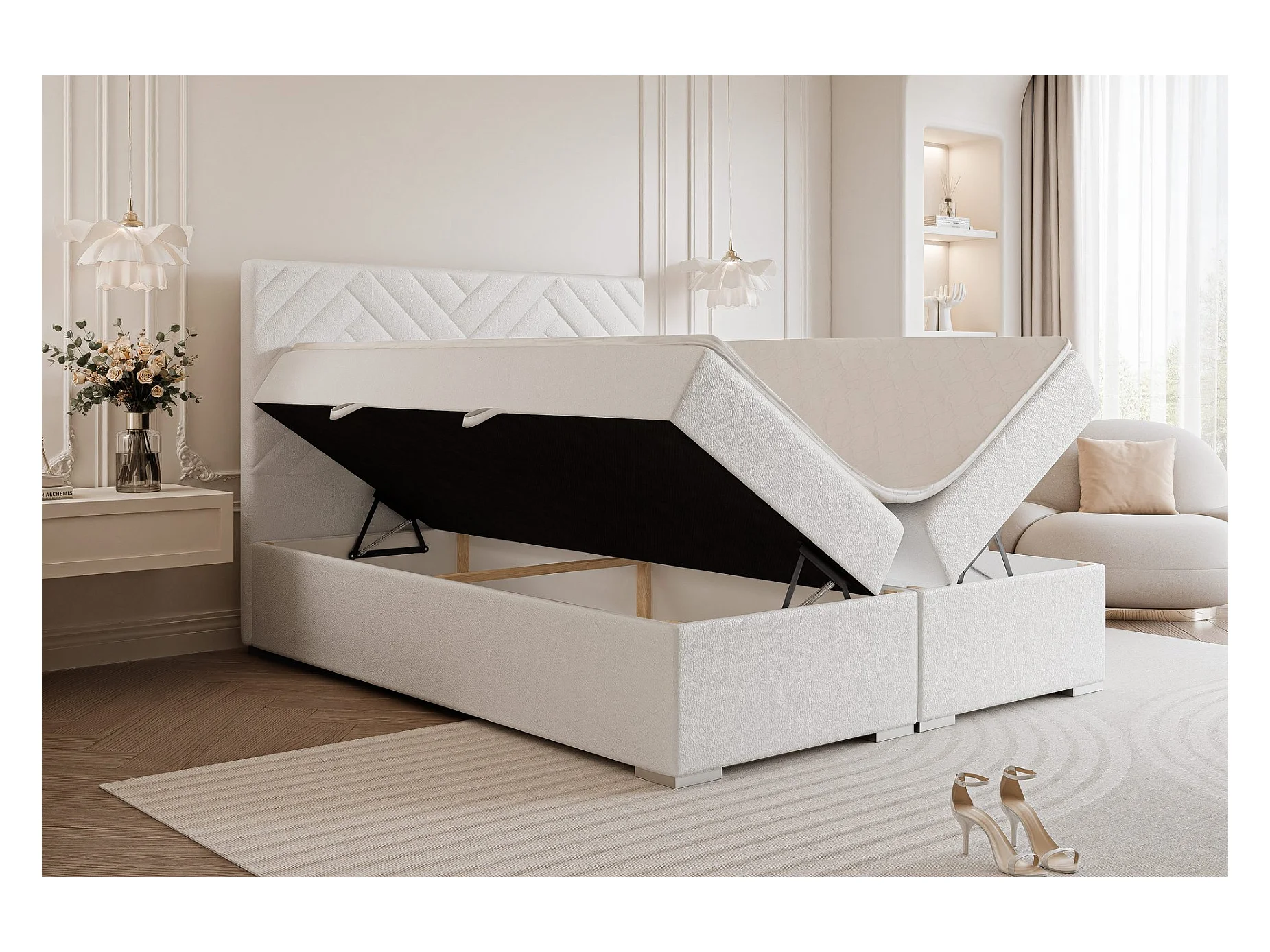 Lit continental rembourré avec surmatelas, blanc - 120x200 - NEREA