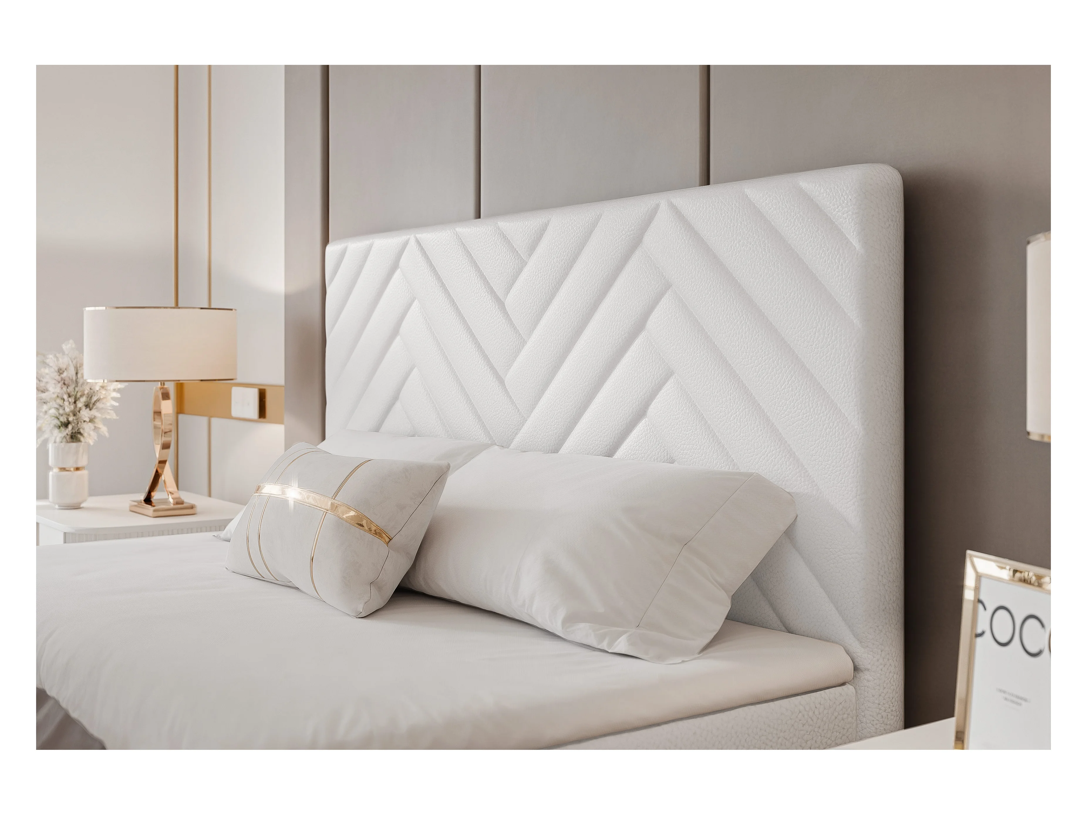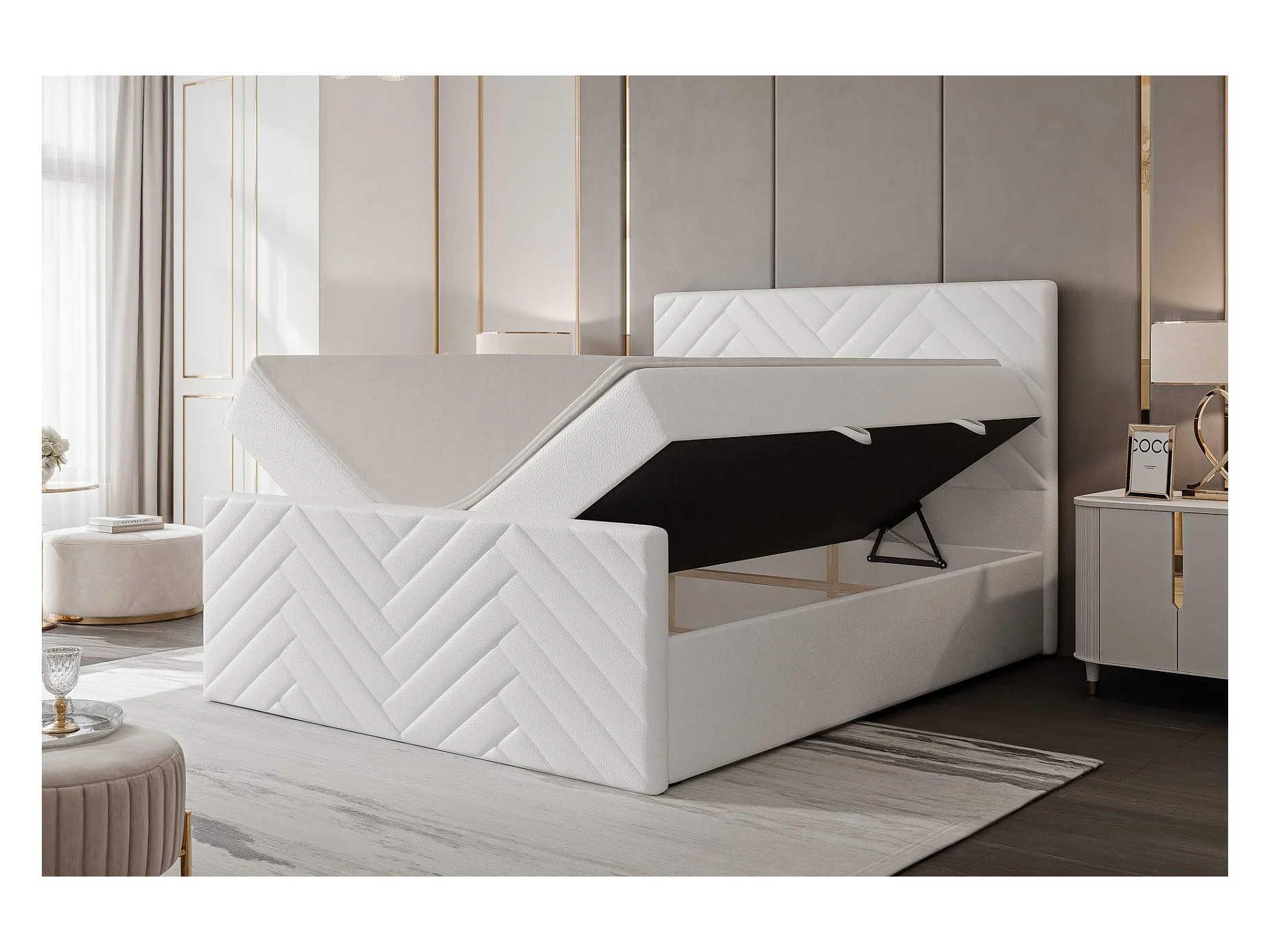 Lit continental rembourré avec surmatelas, blanc - 140x200 - NEREA PLUS