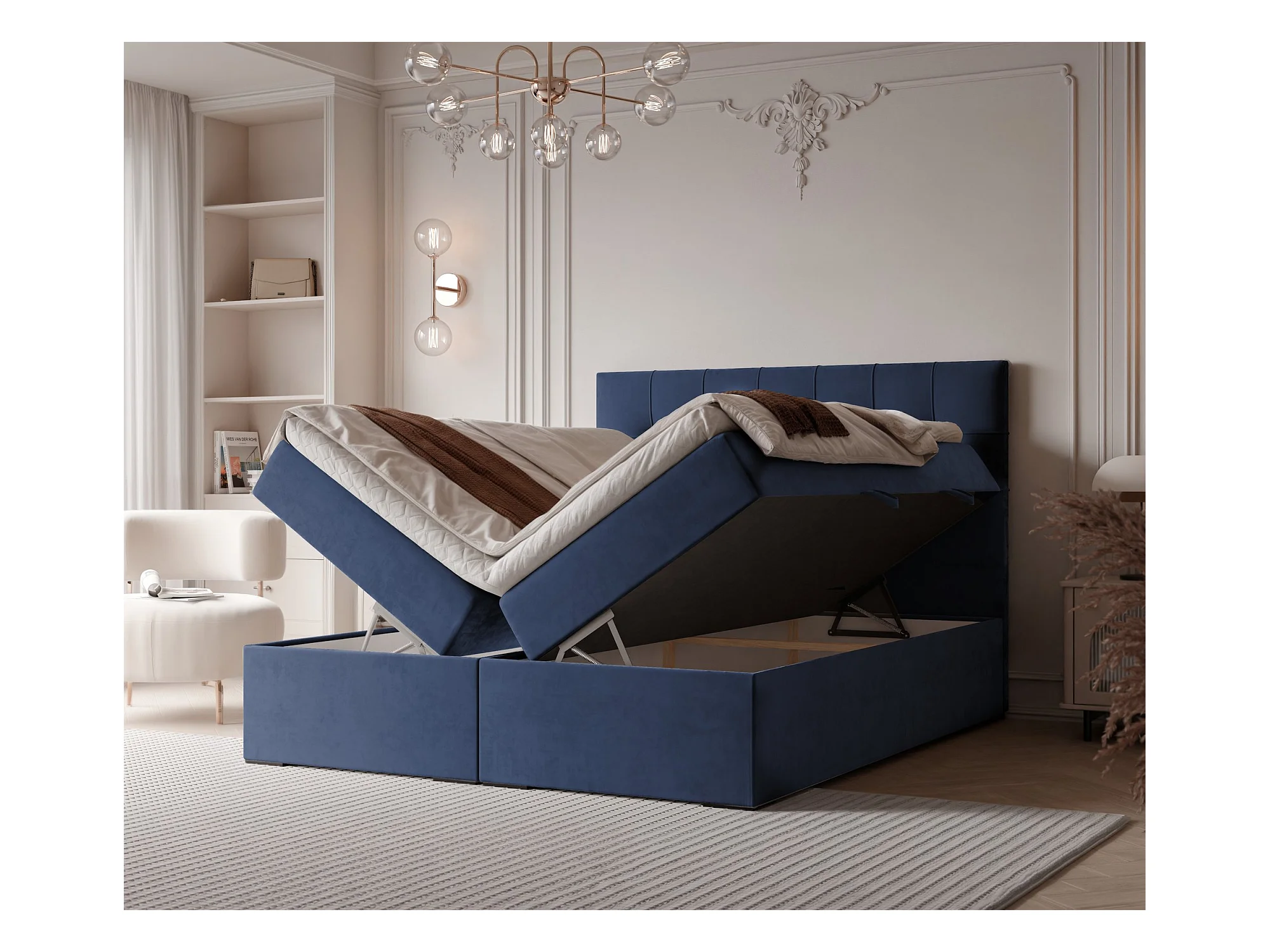 Lit continental rembourré avec surmatelas, bleu - 140x200 - IMPERIAL