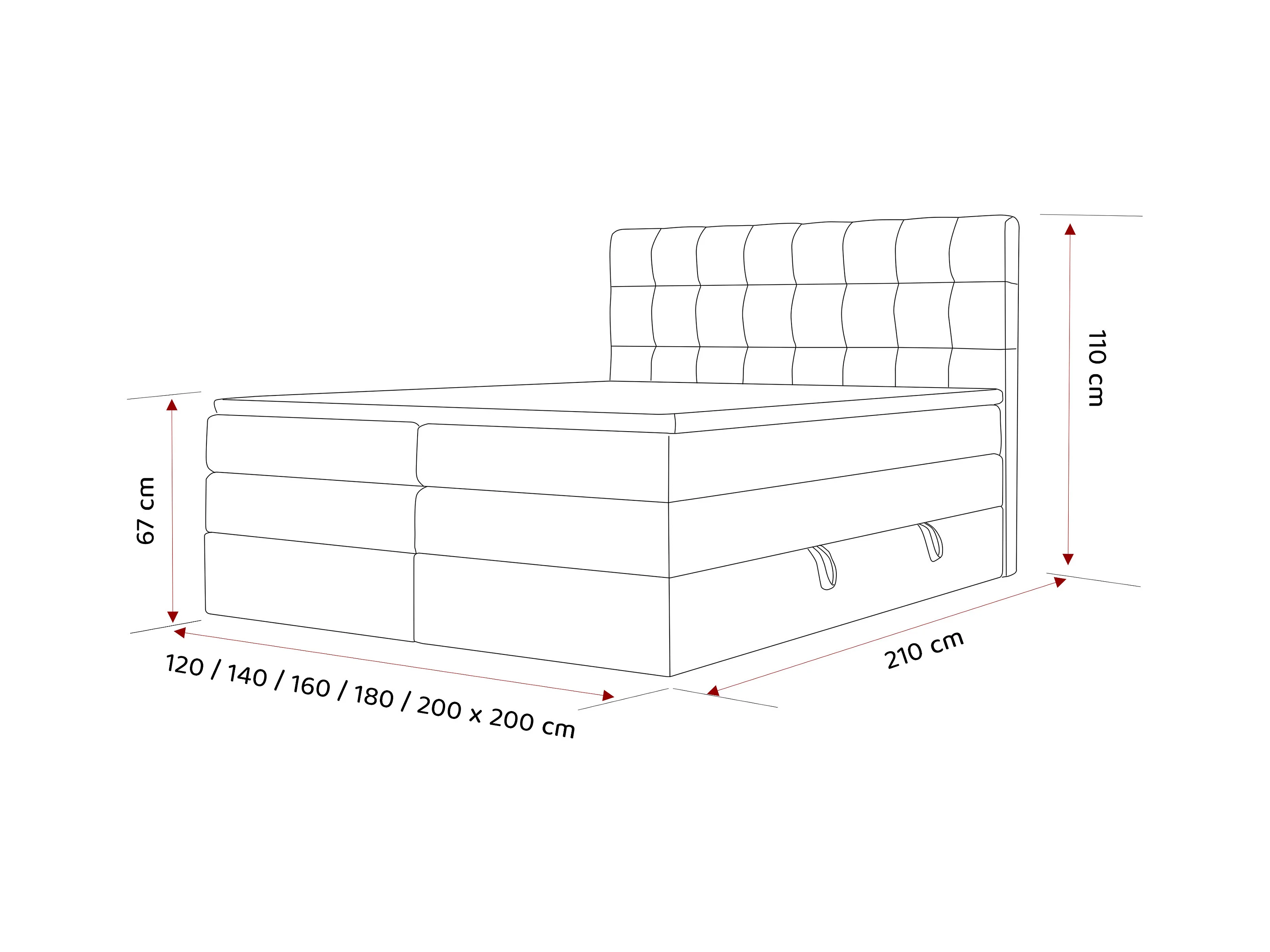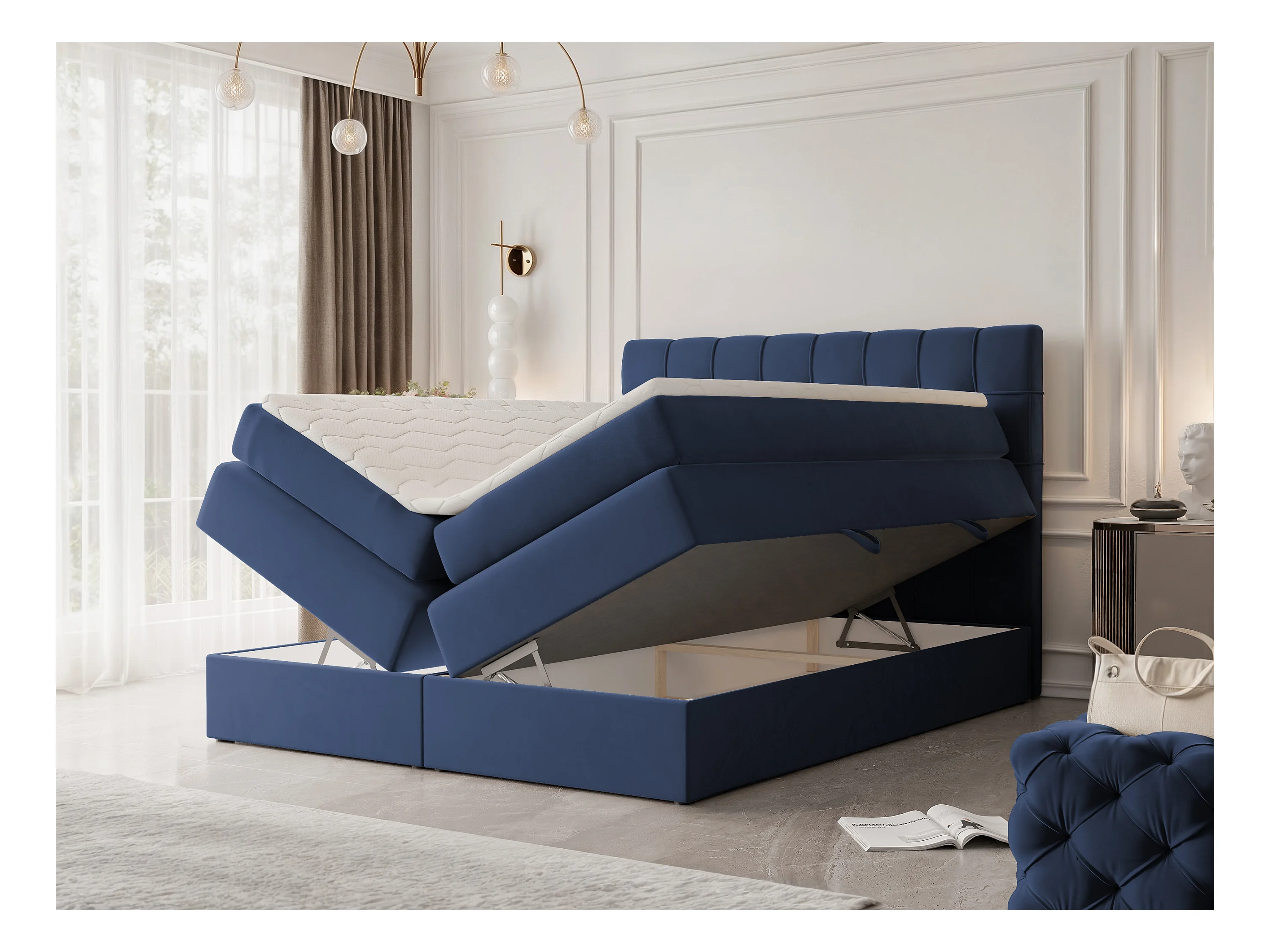 Lit continental rembourré avec surmatelas, bleu - 200x200 - SANTINO