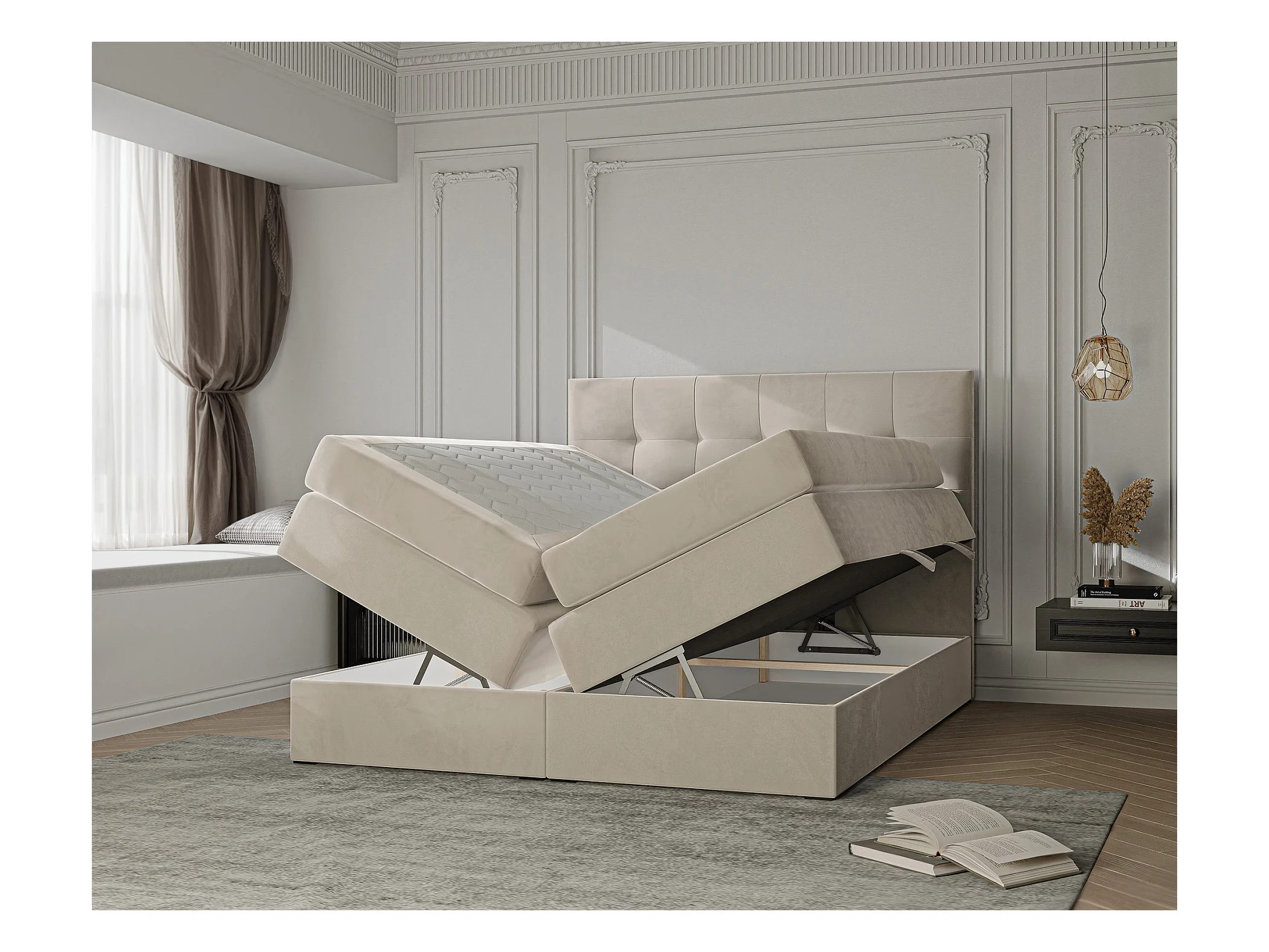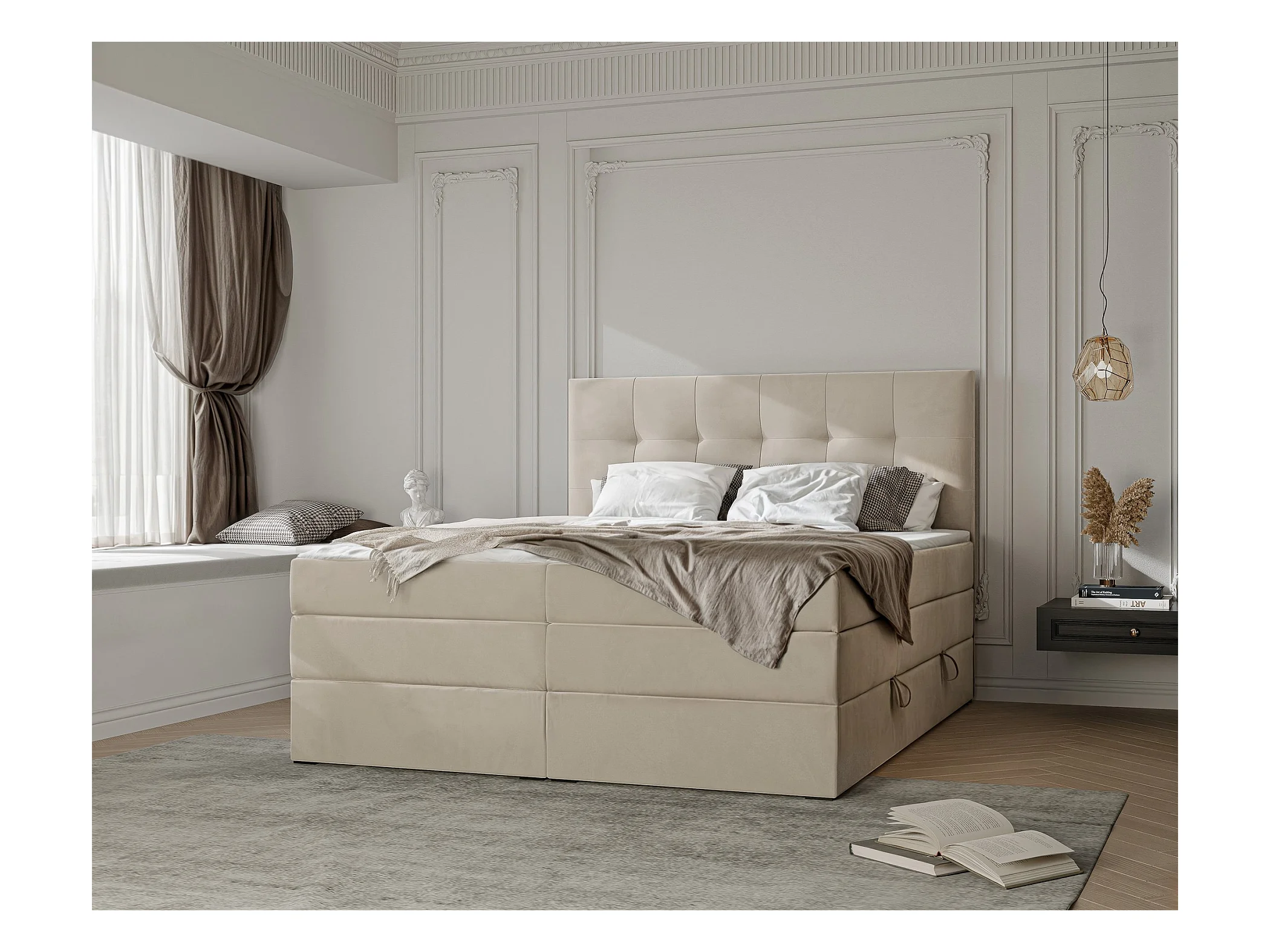 Lit continental rembourré avec surmatelas, crème - 120x200 - AZARIO
