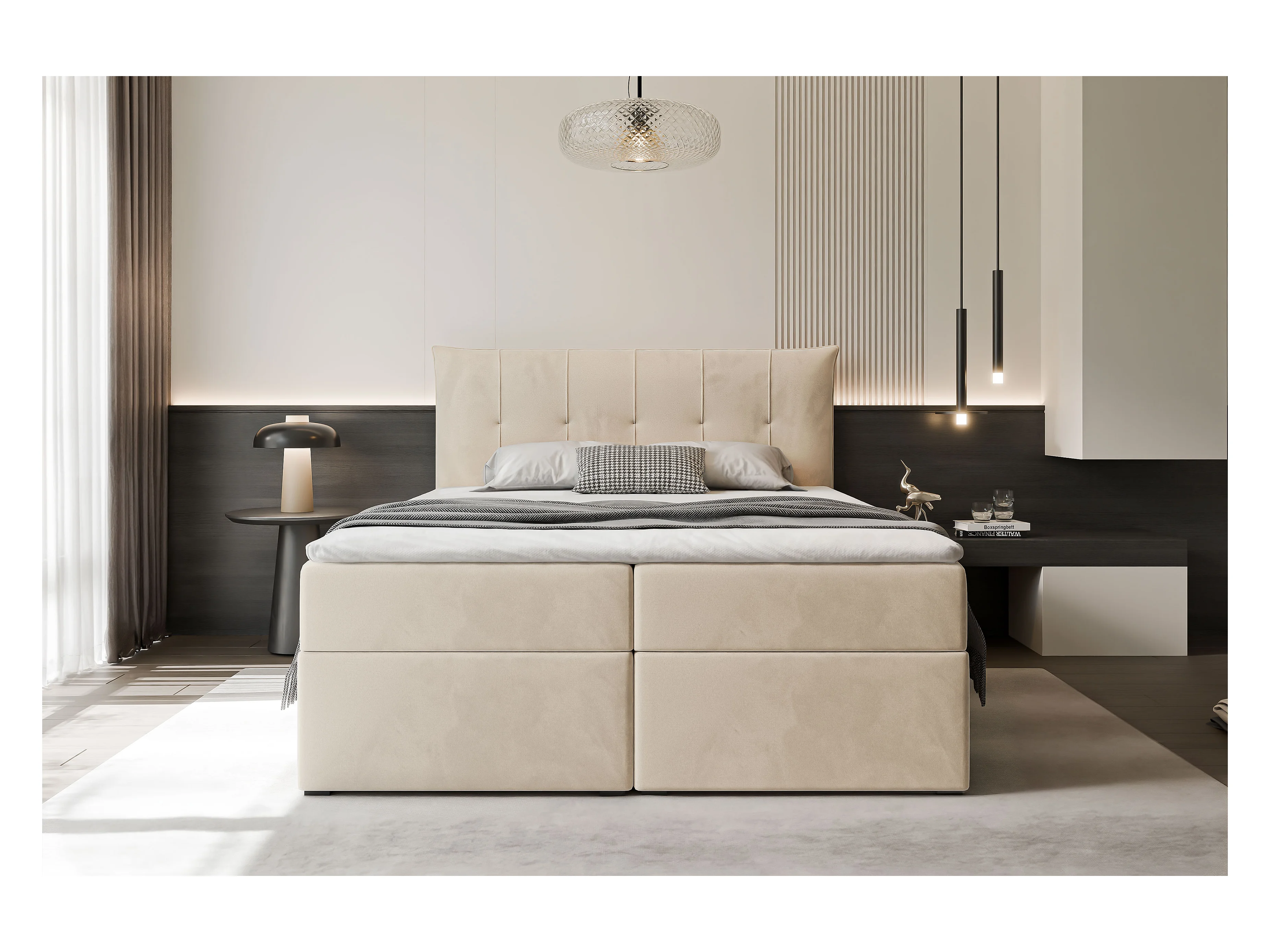 Lit continental rembourré avec surmatelas, crème - 140x200 - CHESTER