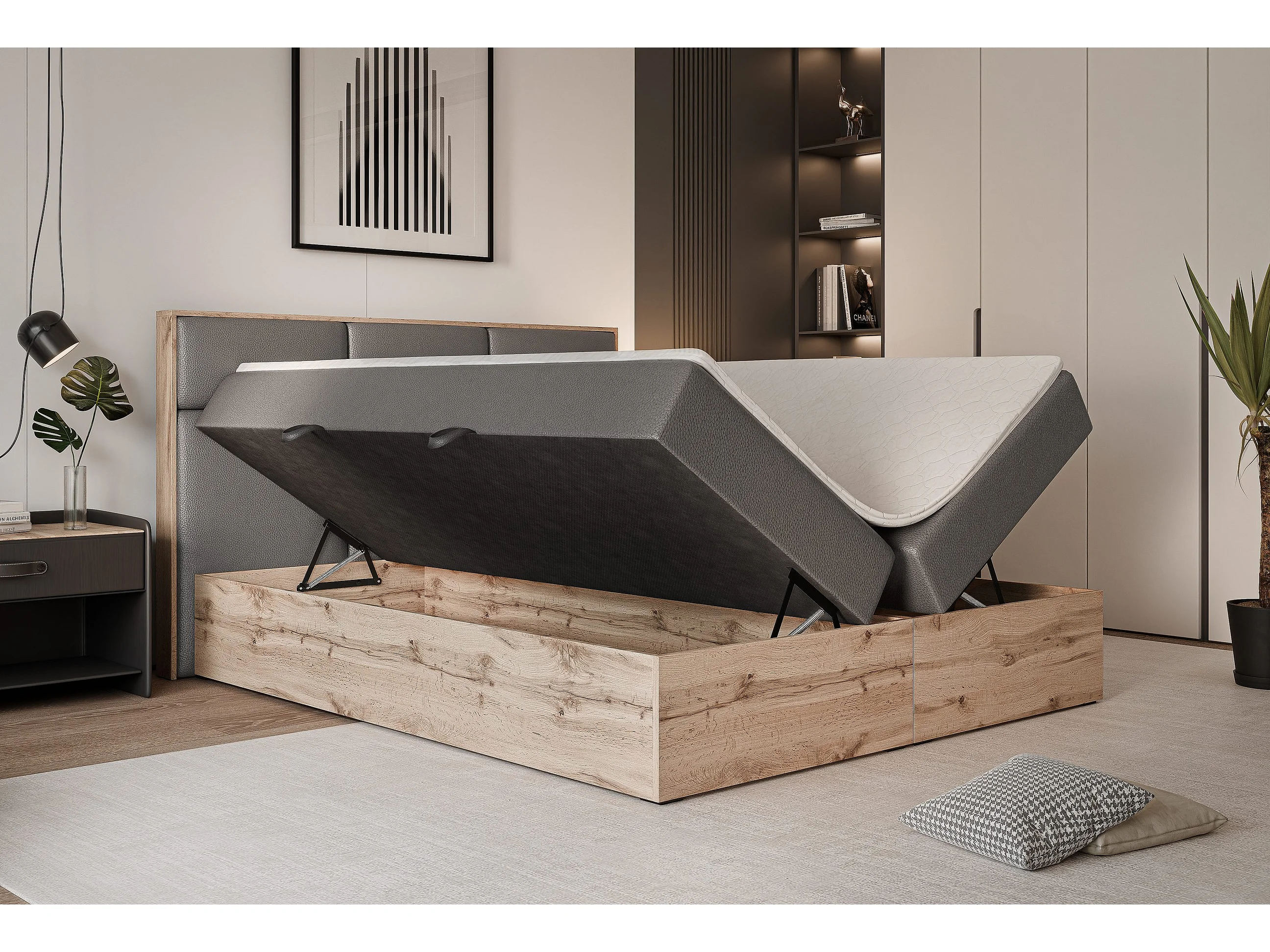 Lit continental rembourré avec surmatelas, gris - 120x200 - LAVIO