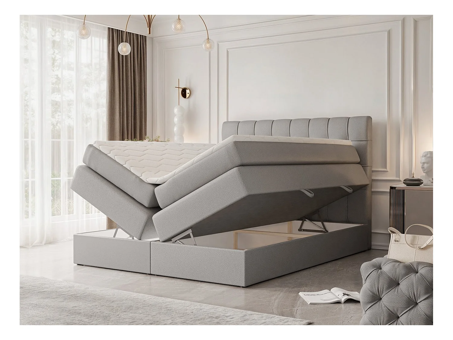 Lit continental rembourré avec surmatelas, gris - 120x200 - SANTINO