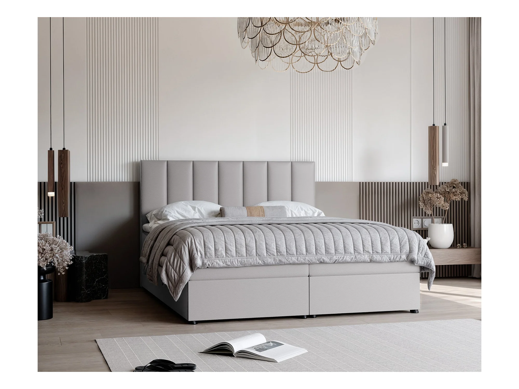 Lit continental rembourré avec surmatelas, gris - 140x200 - ZELTO