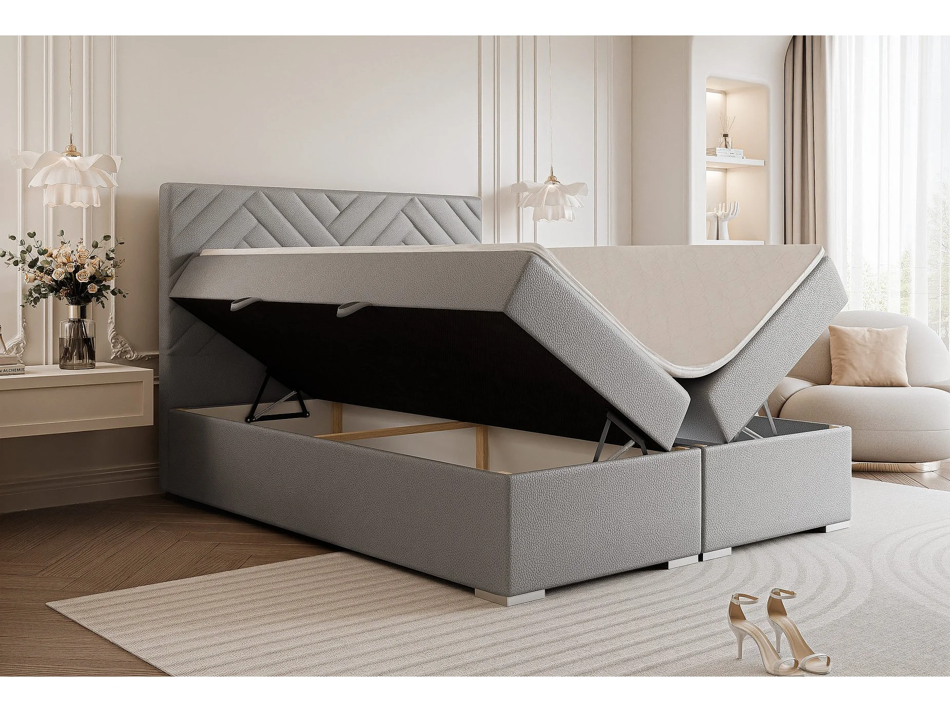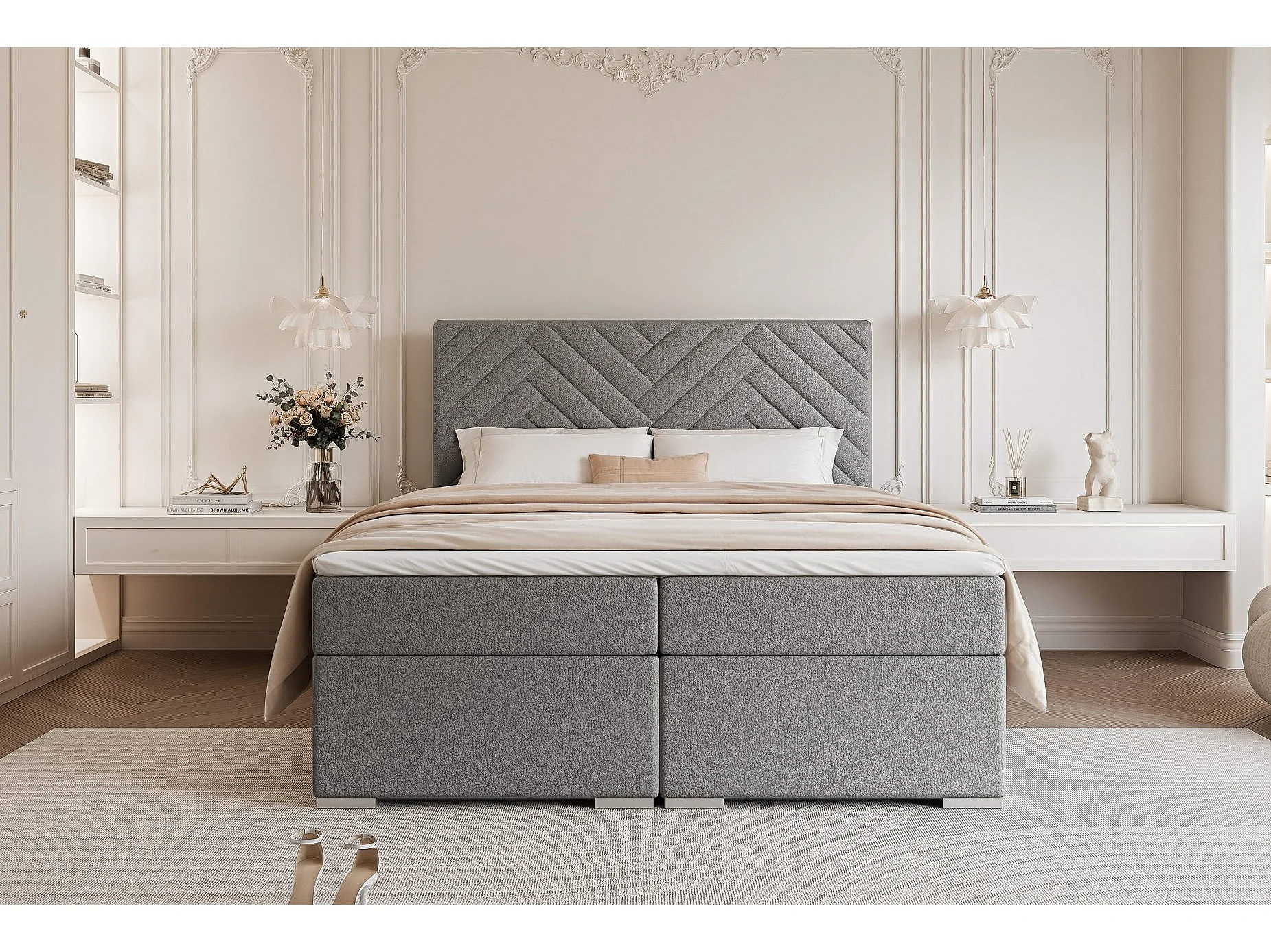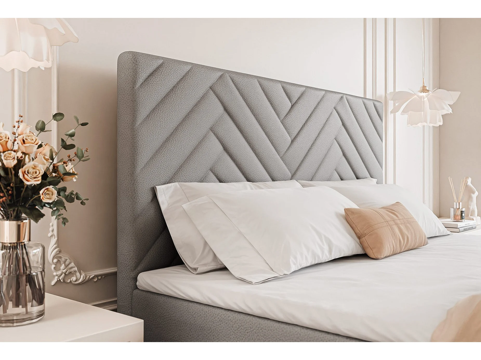 Lit continental rembourré avec surmatelas, gris - 200x200 - NEREA