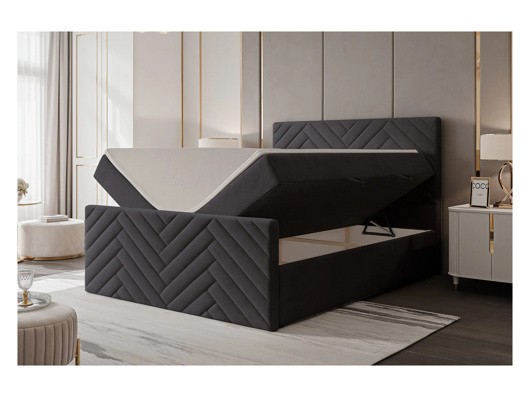 Lit continental rembourré avec surmatelas, gris anthracite - 140x200 - NEREA PLUS