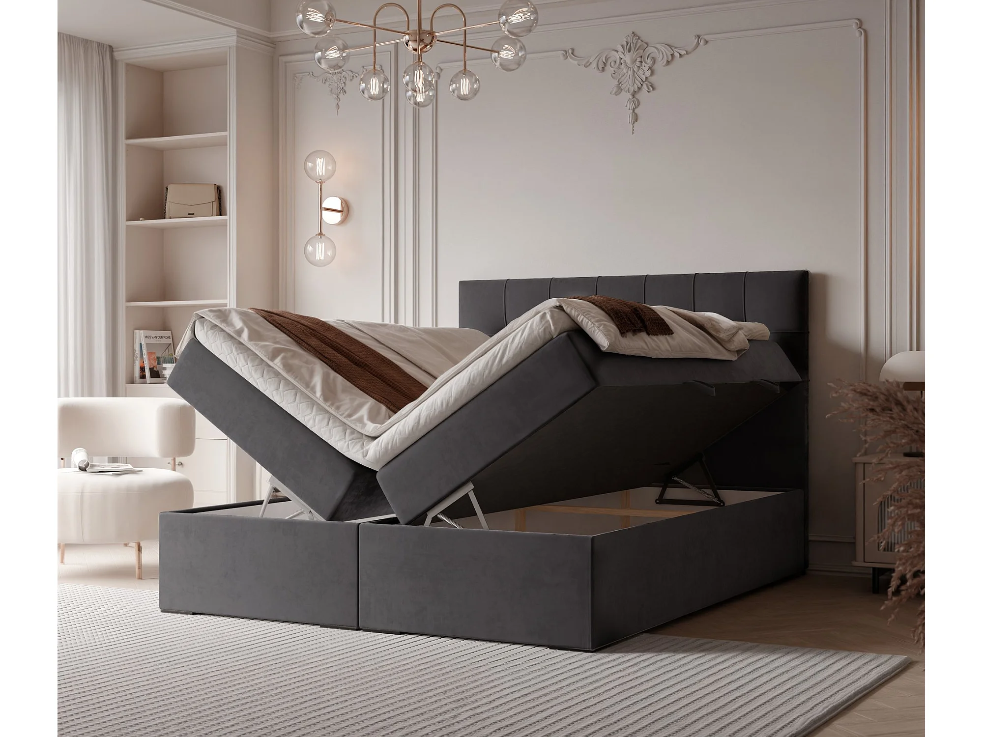Lit continental rembourré avec surmatelas, gris anthracite - 160x200 - IMPERIAL