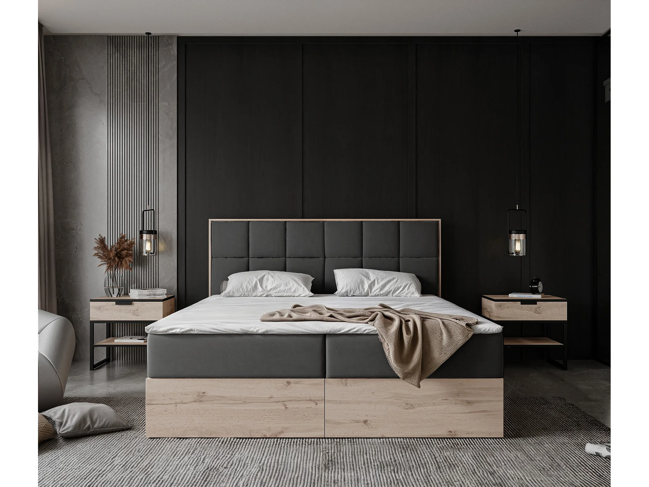 Lit continental rembourré avec surmatelas, gris anthracite - 180x200 - LAVIO II