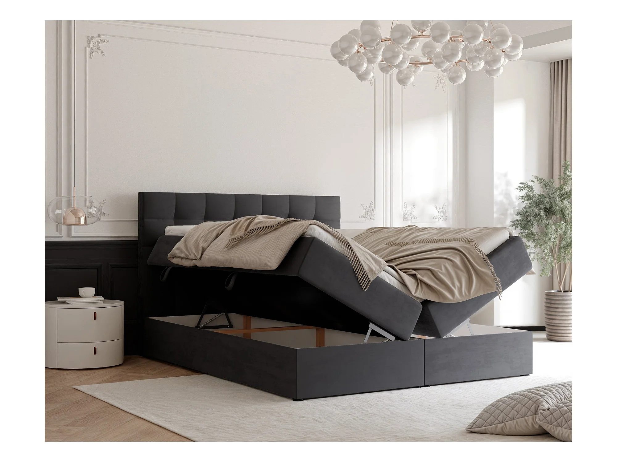 Lit continental rembourré avec surmatelas, gris anthracite - 200x200 - GRAND