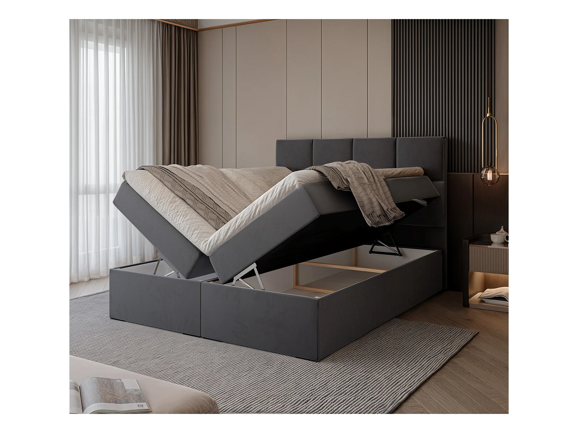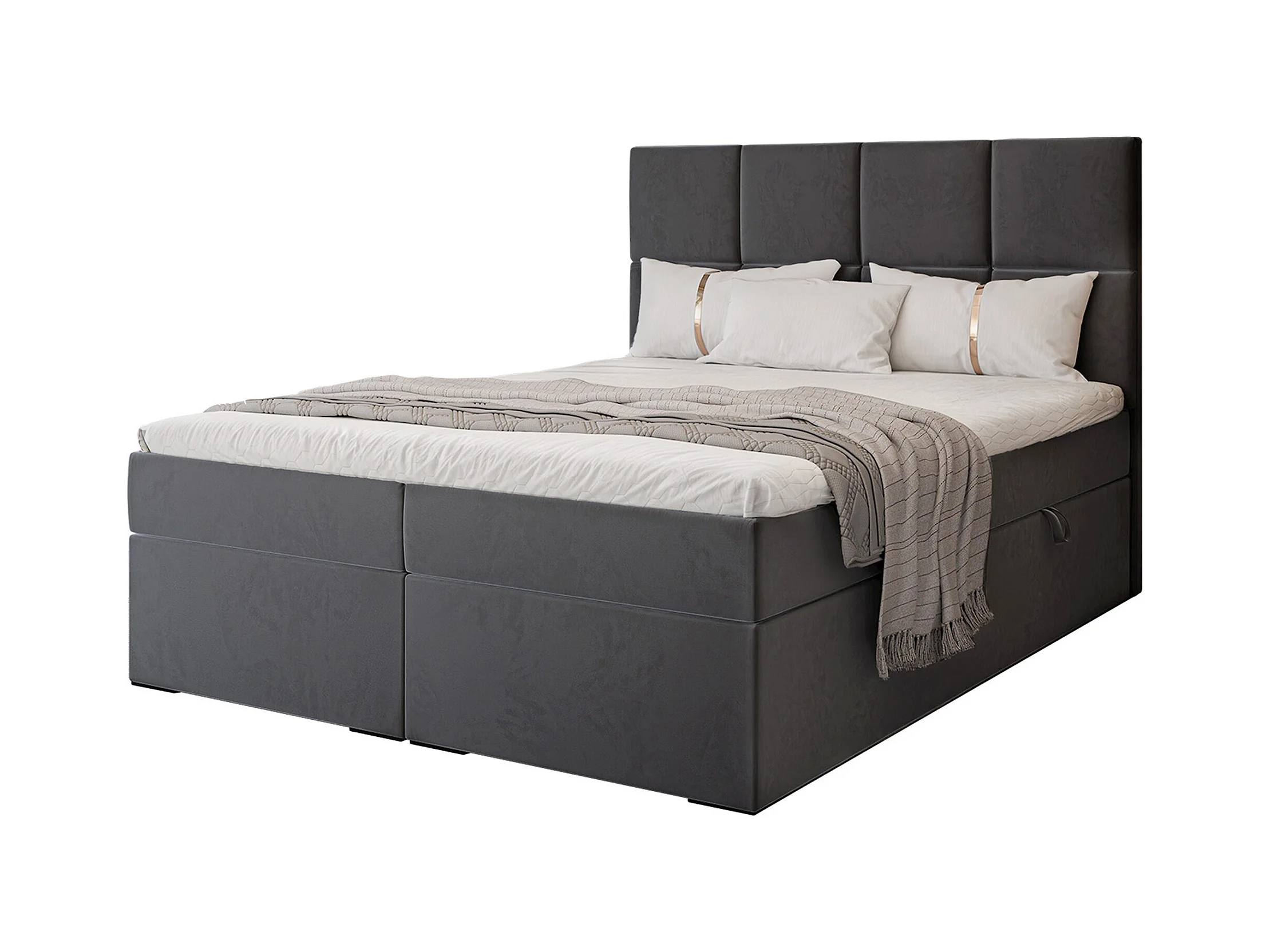 Lit continental rembourré avec surmatelas, gris anthracite - 200x200 - MAGNUS