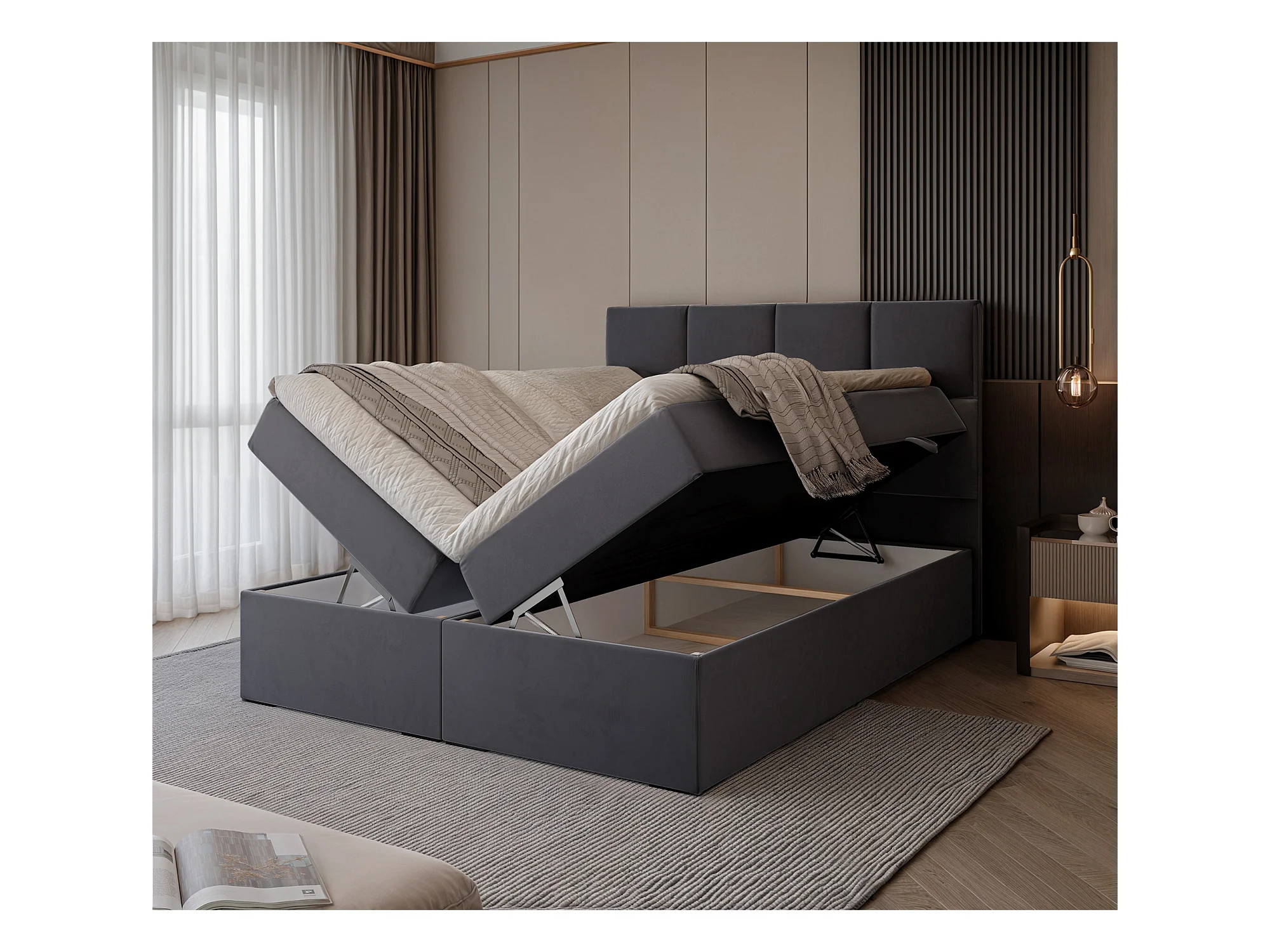 Lit continental rembourré avec surmatelas, gris anthracite - 200x200 - MAGNUS