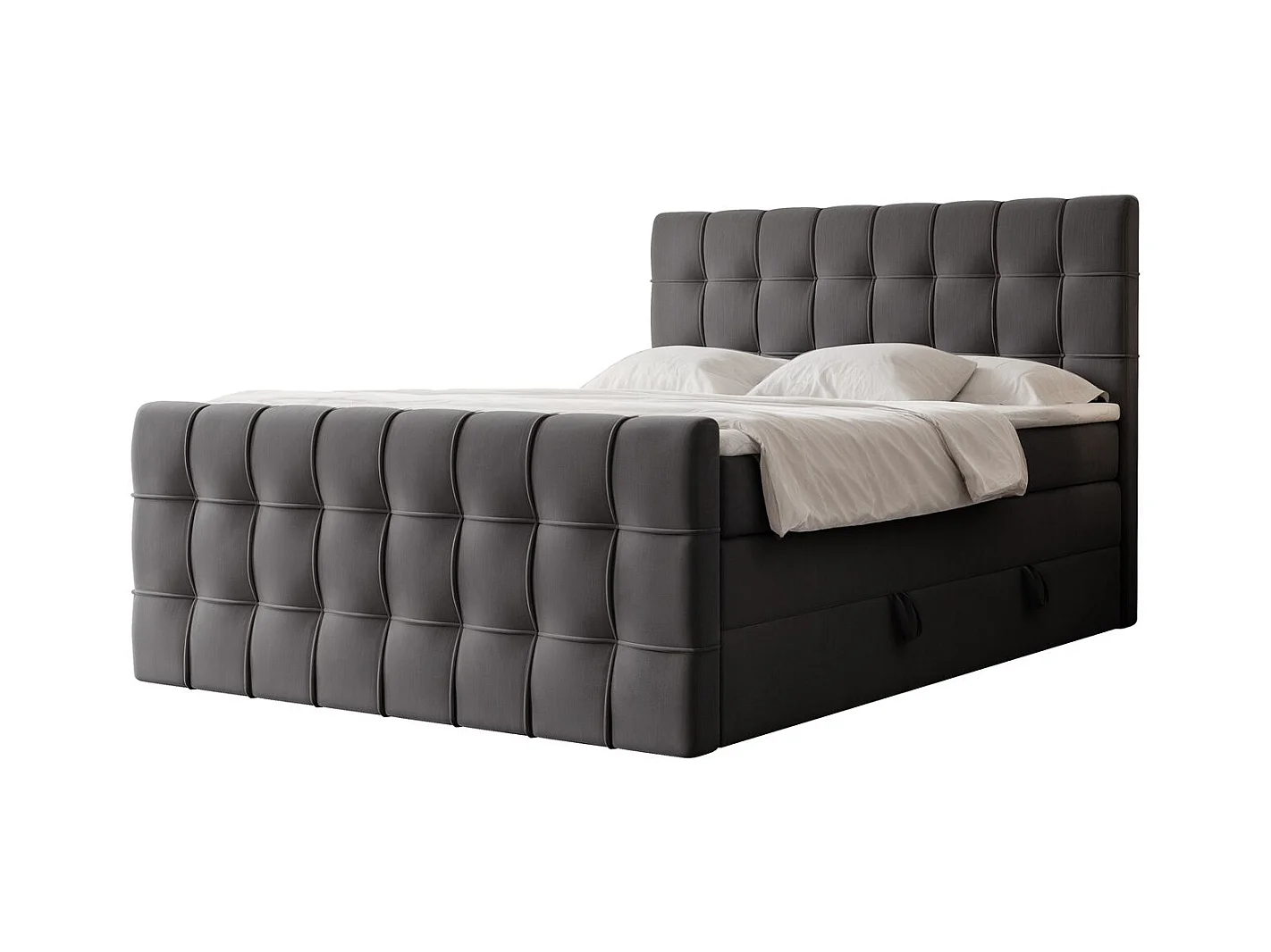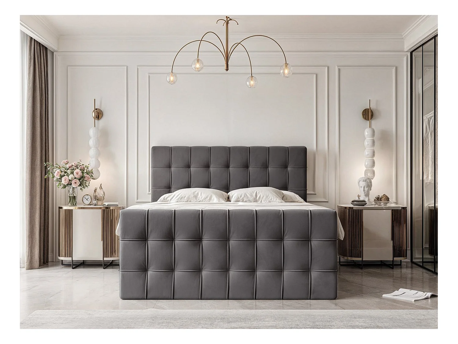Lit continental rembourré avec surmatelas, gris anthracite - 200x200 - SANTORIO
