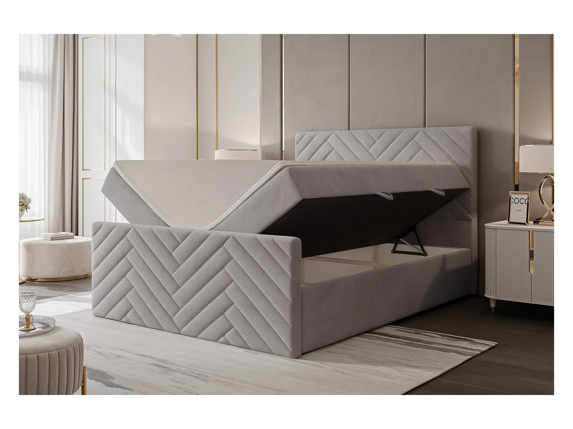 Lit continental rembourré avec surmatelas, gris clair - 120x200 - NEREA PLUS