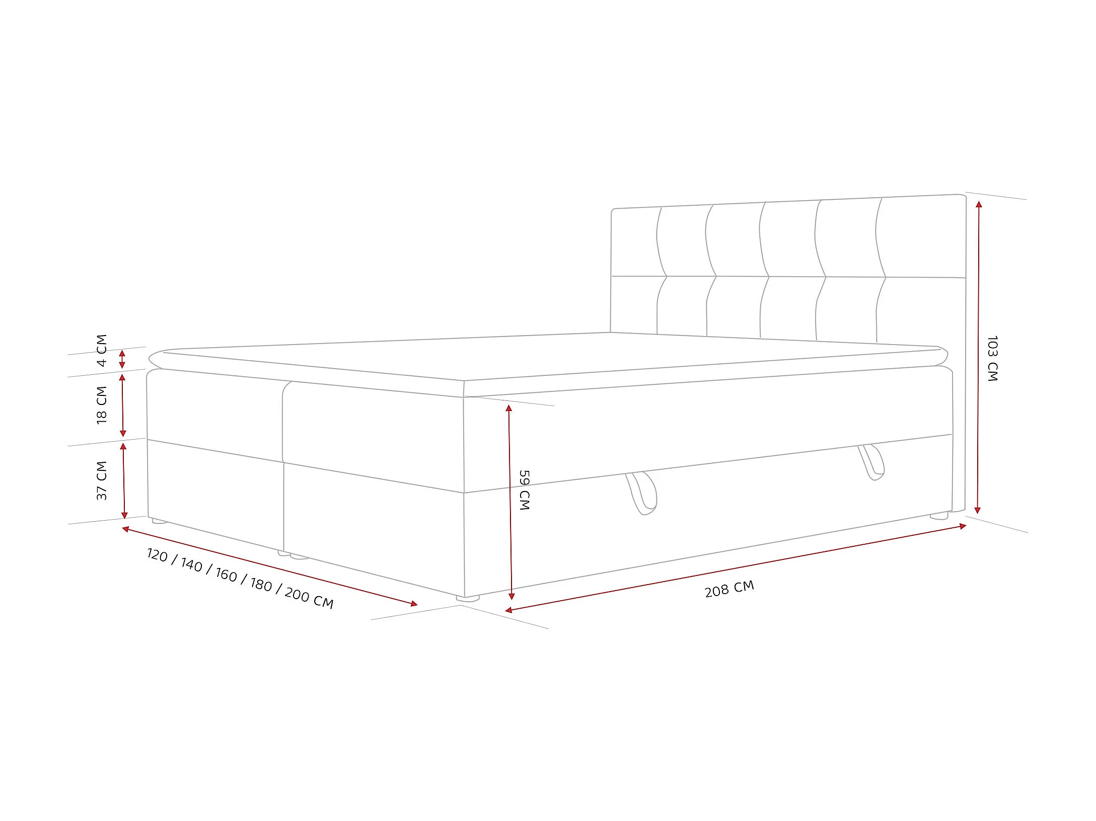 Lit continental rembourré avec surmatelas, gris clair - 160x200 - RENZO