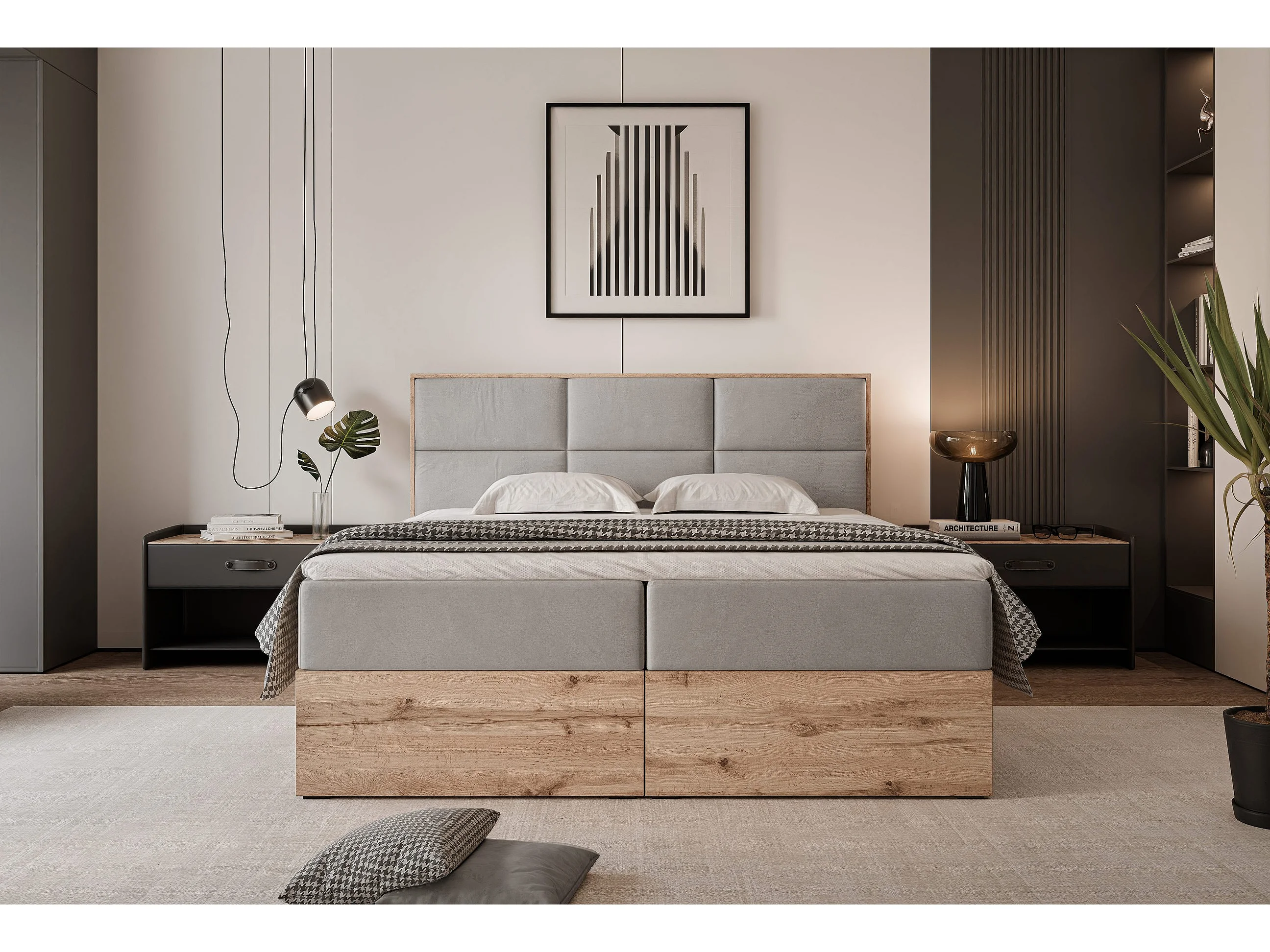 Lit continental rembourré avec surmatelas, gris clair - 180x200 - LAVIO